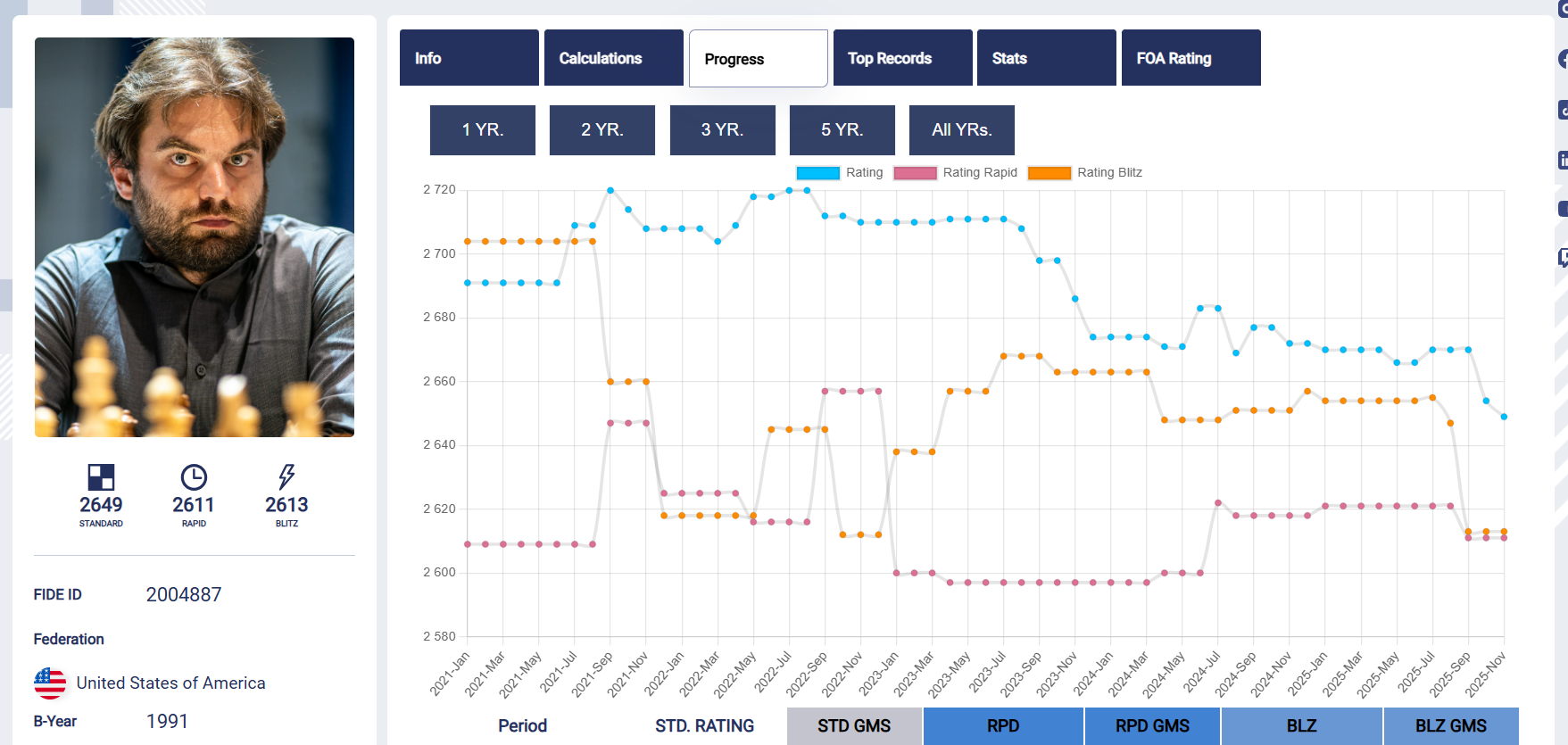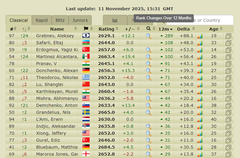Какой же отбор на ТП рандом. 5 из 8 мест разыгрываются на двух турнирах - в большой швейцарке и на кубке мира, которые проходят с интервалом в два месяца. Был в плохой форме в эти два турнира или не смог поучаствовать - считай выбыл из гонки. А какой-то рандомный 2600 на лаке залетел наверх - и попал в ТП. Будет обидно, если условный Каймер, который за год неплохо так прибавил что аж стал топ 4, завтра в тайбрейке сделает неточный ход и забудет про ТП еще на два года. Причем эти турниры - это не показатель формы. Гири и Блюбаум месяц назад выйграли путевку через БШ, казалось бы должны разрывать на КМ - а по факту отлетели в классику (!) на 2м и 3м матче, будучи рейтинг фаворитами в паре. Нужна какая-то менее рандомная и более справедливая система отбора, чтобы в ТП попадали те, кто показывал солидную игру на протяжении всего цикла, а не те, кто играл ни шатко ни валко, но в нужным момент им улыбнулась удача, и они попали в места на каком-то одном турнире и забрали место в ТП.