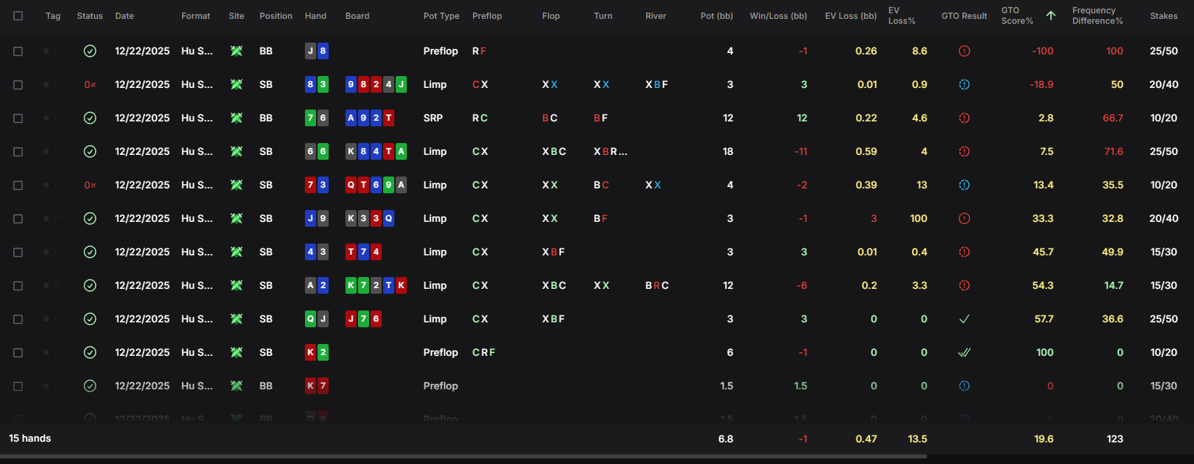 Хотел в 2025-м сыграть приличную дистанцию и заработать кучу денег, перейти на лимит выше и прочее. В итоге я за год сыграл 150к рук...(это 360 часов, примерно) Господи, какой же я ленивый. Как же тяжело быть успешным, когда у тебя нет амбиций и ты хиккуешь, так что даже деньги не нужны...
