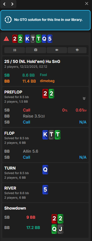 Это какой-то лютый эксплойт? Или он просто жадно добирает/отмораживается? По статам пока похож на рега. Просто моя линия по сути выглядит, как 99+,3х,8x,55 и блефы. Если он изображает тут только 88,55,66 то весь мой диапазон это блафф-кетчеры и я, как и многие реги, просто выкинут тут 95% рук на такой овербет, чтобы не гадать. Он супер-умён или что?
