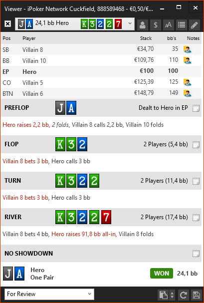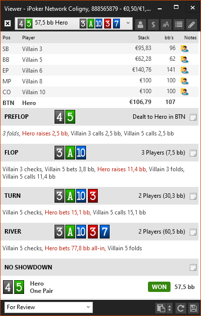 Тестирую новую линию с блефами против фишей в мультипоте. Как-то раньше стеснялся в мультипоте сильно отмораживаться. Теперь вот больше стараюсь от структуры доски отталкиваться.