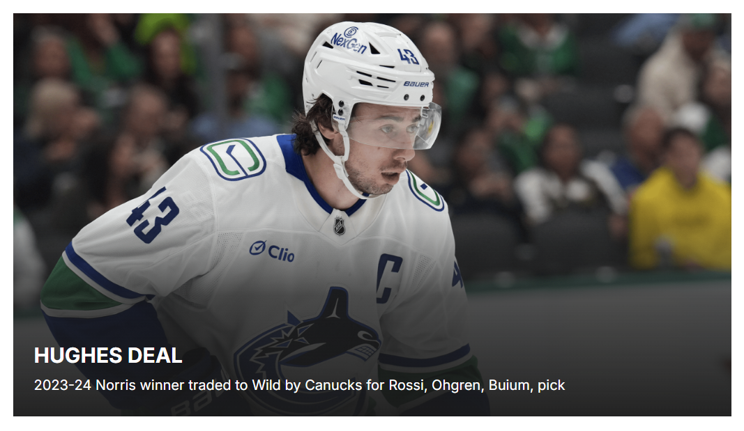 Vancouver Canucks Trade Quinn Hughes to Minnesota Wild for Minnesota Wild’s 1st round pick in the 2026 NHL draft, Marco Rossi, Liam Öhgren and Zeev Buium