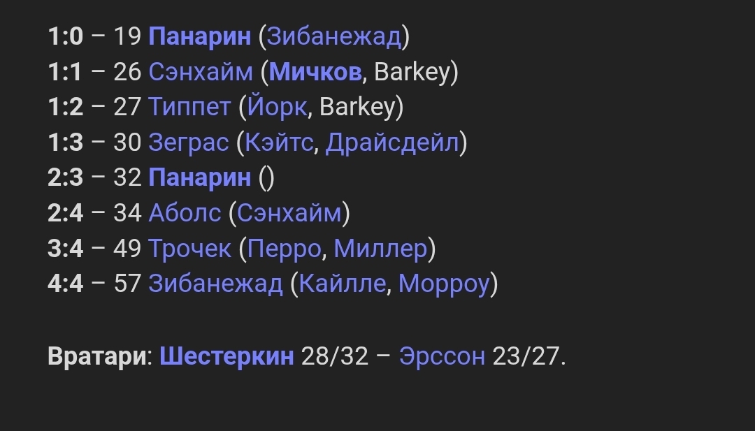 В последних трёх матчах Рейнджерс проиграли дома Анахайму и Ванкуверу, и кое-как, через овертайм, одолели в гостях Сент-Луис. Всё это, мягко говоря, не самые сильные команды лиги. Похоже, ещё один сезон для них без борьбы за кубок. Ещё у меня возникает ощущение, что Панарин показывает далеко не всё на что способен. Если б выкладывался, может и протащил бы команду в ПО.