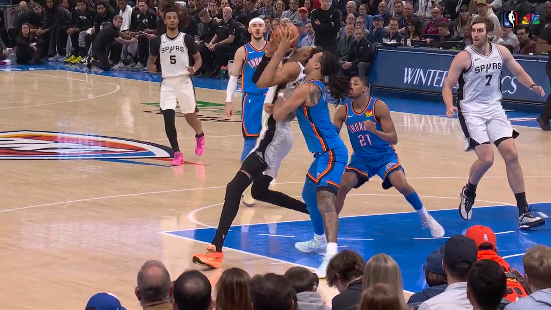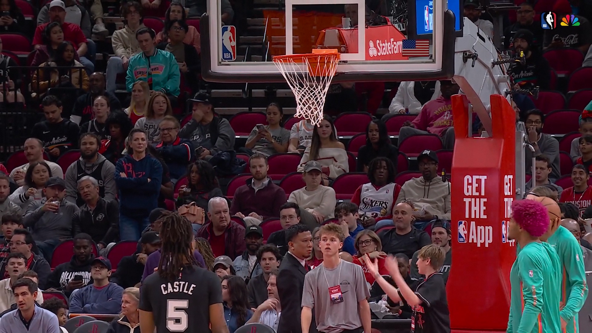 Там Касл на разминке разъебал кольцо. Персонал долго ебался, пришлось кольцо заменить на другое, задержали старт на 22 минуты. Орнул с того, как комментаторы и сотрудники арены по фану вычисляли виновного. Сначала подозревали Вембу, но в итоге наткнулись на момент, где Касл долго провисел на кольце. Потом еще раза 3 этот видос крутили и помечали на нём Касла, ахахаха. И это всё под рофлы комментаторов) всё-таки в штатах из всего умеют делать шоу