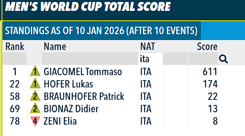 Бионаз в тотале в 23/24 был на 21-ом месте и казалось - вот, нащупал, сейчас в гору пойдёт - но увы. У остальных так же, хотя они и не пердуны даже. Надеюсь, наскребут бабок итальяшки, чтобы ещё кого-нибудь обколоть допингом, как Джакомеля, чтобы тусовку французов-норвежцев-шведов хоть кем-то разбавлять