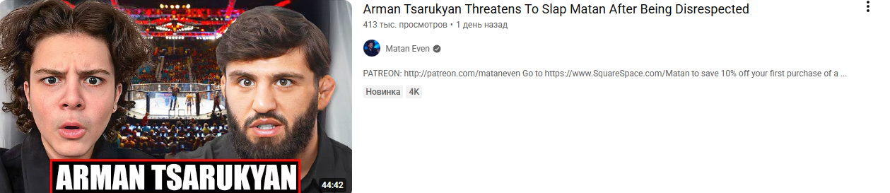 Интервью с Арманчиком собирает 400к за день интервью с чмадимом чмомковым собирает 500 просмотров за месяц))) Конченные твари из унтермельяненко немужчина тим своей отвратительной антихаризмой собираются убить все промоушены в которых подписаны, неудивительно что кроме кфс в мма смотреть нехуй