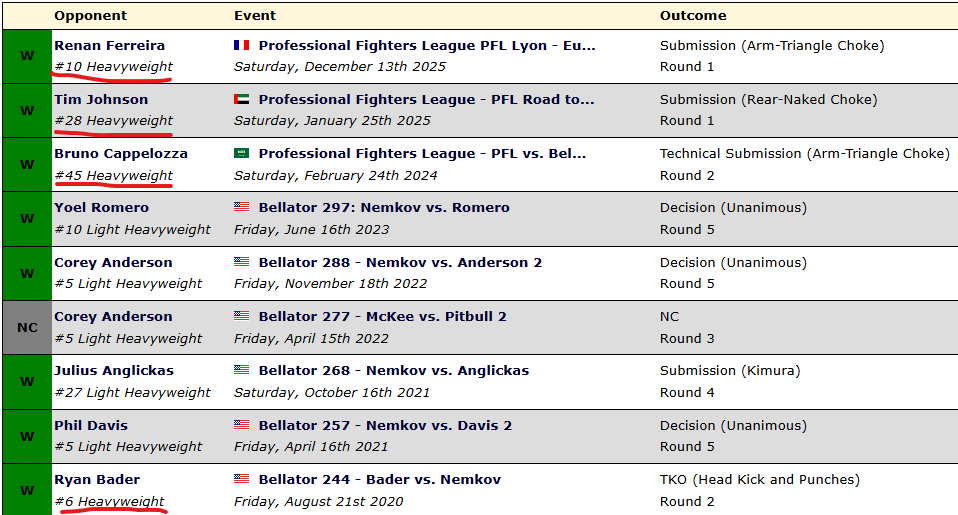 миочич и кормье крутые, но фёдор их уровня не касался - те в юфс фармили, а император pride чистил весь дивизион за 10 лет. Величайший? лайт хэви был, в тяжах только начал.
