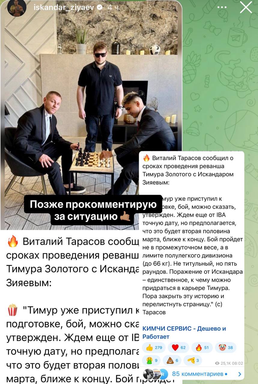🔥 Искандар Зияев сообщил, что бой с Золотым не состоится в конце марта, так как Искандар в этот период будет проводить сборы в Таиланде: