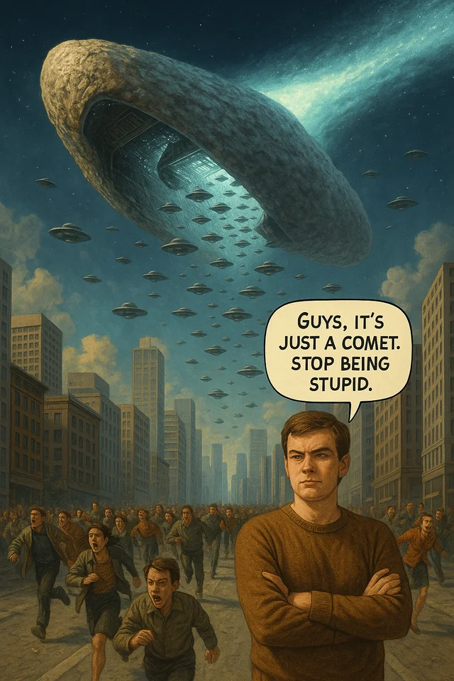 В этом ИТТ треде продолжаем обсуждать загадочный объект 3IATLAS. В прошлых тредах среди анонов достигнут консенсус, что объект с высокой вероятностью не является кометой! Что же это тогда? Скоро узнаем...