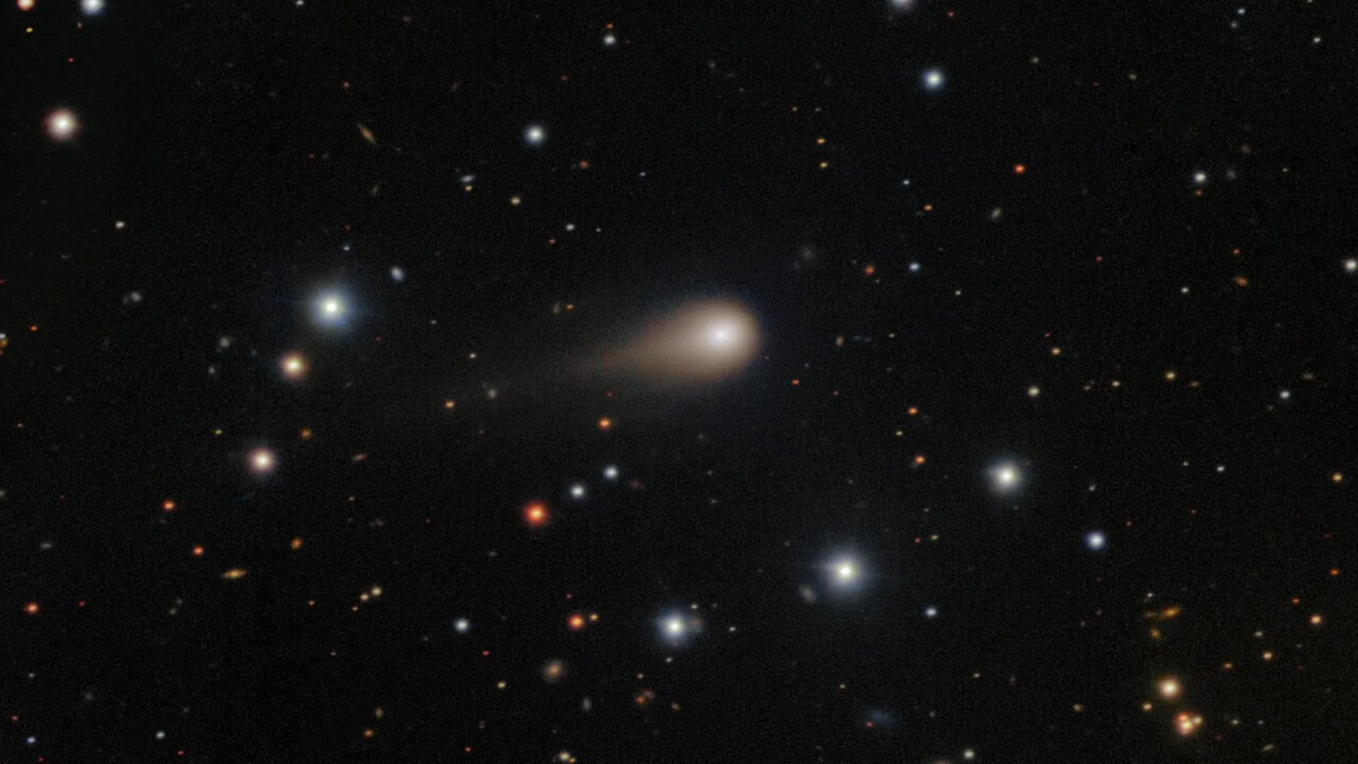 Облучённая комета 3I/ATLAS светится зелёным и скрывает свой хвост на новом изображении Чжан использовал фильтр для обнаружения двухатомного углерода (C₂), который светится зелёным. Он отметил, что в комете есть множество крупных молекул, содержащих углерод и водород (углеводороды). Когда комета приближается к Солнцу, ультрафиолетовый (УФ) свет разрушает эти молекулы. «Это примерно по той же причине, по которой мы обгораем на солнце, если слишком долго находимся без солнцезащитного крема, — сказал Чжан в интервью Live Science. — УФ-лучи разрушают нашу ДНК [в клетках кожи], что похоже на разрушение больших молекул, содержащих углерод». Когда это происходит с кометой, часть обломков молекул представляет собой два связанных атома углерода — двухатомный углерод, который астрономам легко обнаружить. На изображении кажется, что у кометы отсутствует пылевой хвост, но он всё же есть. Чжан отметил, что если внимательно присмотреться, левая сторона кометы выглядит немного ярче, чем правая. Это слабое асимметричное свечение возникает потому, что мы видим хвост почти фронтально, и он находится прямо позади кометы, слегка изгибаясь влево. Иными словами, кажущиеся отсутствие хвоста — не повод для волнения. https://www.livescience.com/space/comets/irradiated-comet-3i-atlas-glows-green-and-hides-its-tail-in-new-image