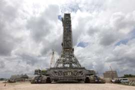 Транспортёр CT-2 впервые за 3 года снова заполз на площадку 39B - для примерочных испытаний. Как ни странно для NASA, с модификацией площадки и транспортёра они не обосрались с первого раза, всё подошло.Насколько я понял, они оба - и стартовая площадка, и краулер - полностью готовы к весёлым манипуляциям с SLS.