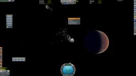 >>440062Ну вот мы и приехали.Второй экспедицией к Луне должны были улететь ещё два огурца с космическим кораблем и грузом - металлическими фермами для скрепления частей межпланетника и маленьким одноместным кораблем для этой работы.Или деталь заглючила, или она вообще не отделяется, а я забыл об этом. Не могу отделить последнюю ступень ракеты.В большом корабле достаточно топлива, чтобы затормозить у Луны с грузом, но со ступенью ракеты мне никак не затормозить, даже если я сожгу всё топливо.Перезагружать не хочу. Надо подумать как быть.Четыре варианта пока в голову пришли.Первый. Я перехожу в корабль, отстыковываюсь, огибаю Луну и лечу домой. При этом я теряю весь груз: фермы и маленький кораблик.Второй. Я забираю всё топливо, отстыковываюсь и пробую состыковать корабль с межпланетником на лунной орбите. При этом я теряю груз, но доставляю к межпланетнику космический корабль, появляется способность маневрировать этой большой бочкой на орбите. Следующим рейсом можно отправить только фермы, уже без корабля.Третий. То же самое, но порознь: одного огурца в большой корабль, одного в маленький, выходят на орбиту по отдельности, стыкуются по отдельности. Спасается маленький корабль.Четвёртый и самый сложный. Маленьким кораблем собрать фермы в пачку (надо успеть прежде чем связка достигнет Луны), отстыковать их и попробовать им же доставить эту пачку на лунную орбиту и пристыковаться к межпланентнику. Второй огурец остаётся в большом корабле и либо улетает, либо тоже пробует пристыковаться.Всё бы ничего, но маленький корабль сам неисправен: у него перепутаны местами маневровые двигатели. В итоге он почти не слушается управления: вместо перемещения вправо-влево-вверх-вниз его закручивает. На Земле я этого не обнаружил: попшикал RSC-ками - всё работает, я его и погрузил сразу в ракету.Я бы мог поменять местами маневровые двигатели или даже может быть открутить ферму, которую заело. Но я не взял никакого инструмента.