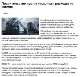 >>591513 Это конец. Сначала была первая волна на моей памяти, когда нефть упала и санкции за Крым попёрли. Потом еще проблемы с Протонами вызвали сокращения финансирования и неясность с главами Роскосмоса и ФКП, а сейчас используют коронавирус как последний добивающий удар по отрасли.