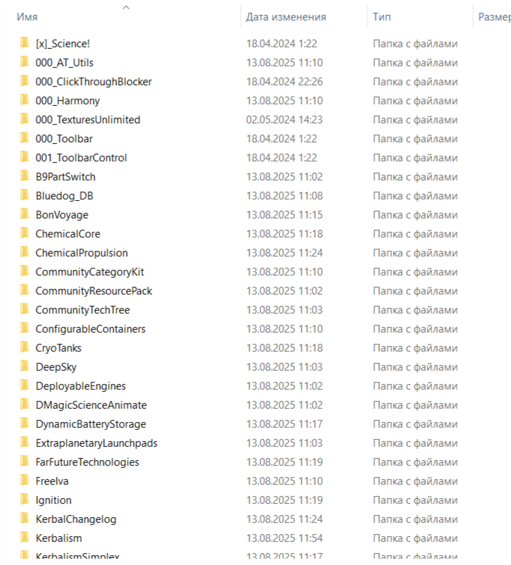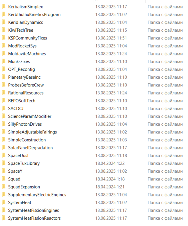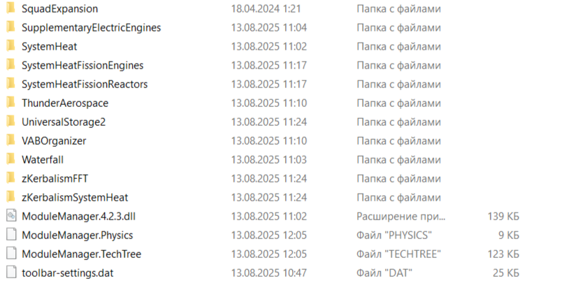 Поверх этого очевидно базовые моды любой сборки на звук, текстуры, Trajectories, Persistent Rotation, миллион других QoL модов + паки реальных двигателей, деталей, систему жизнеобеспечения для смешных зеленых огурцов и прочее.