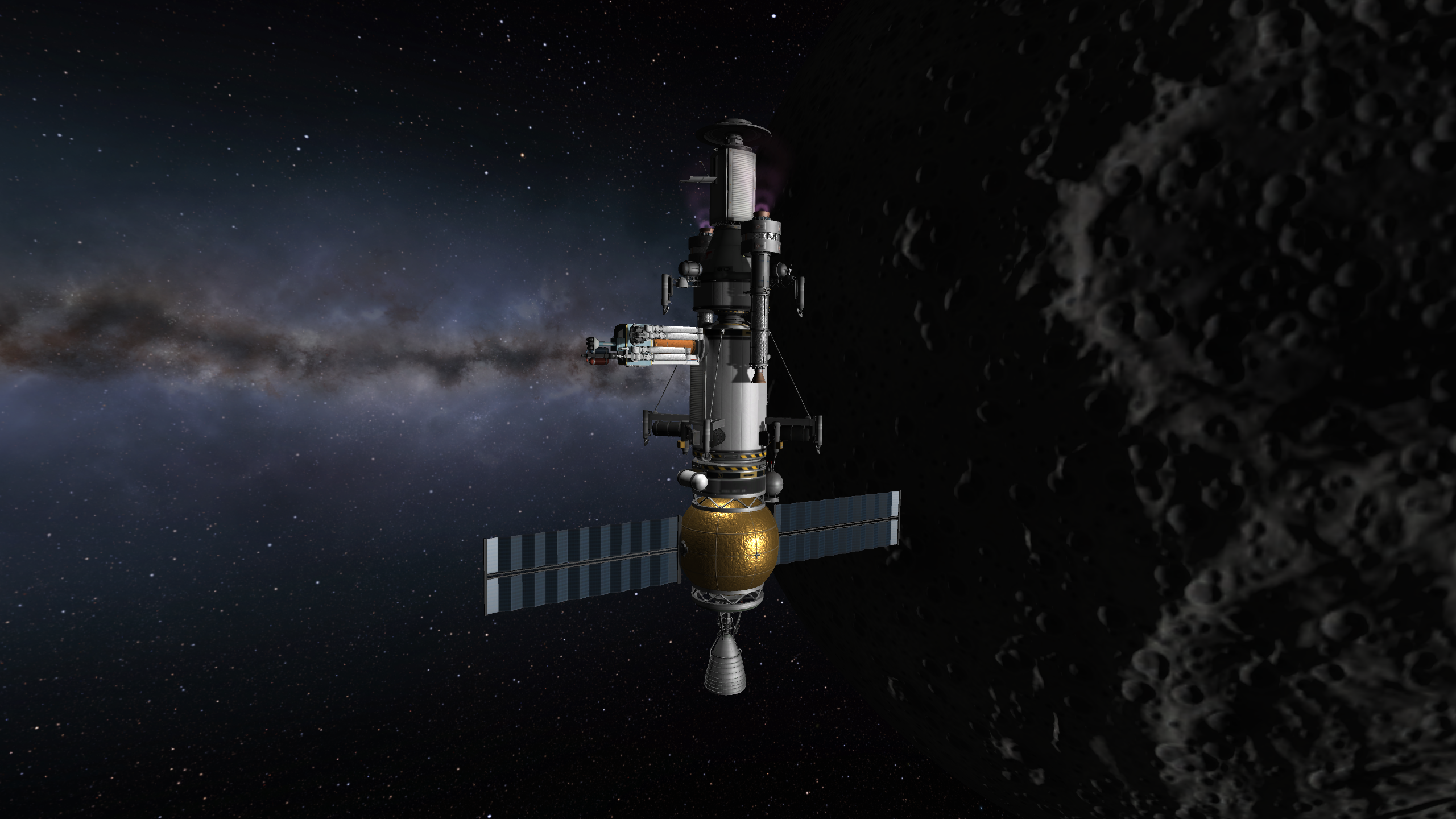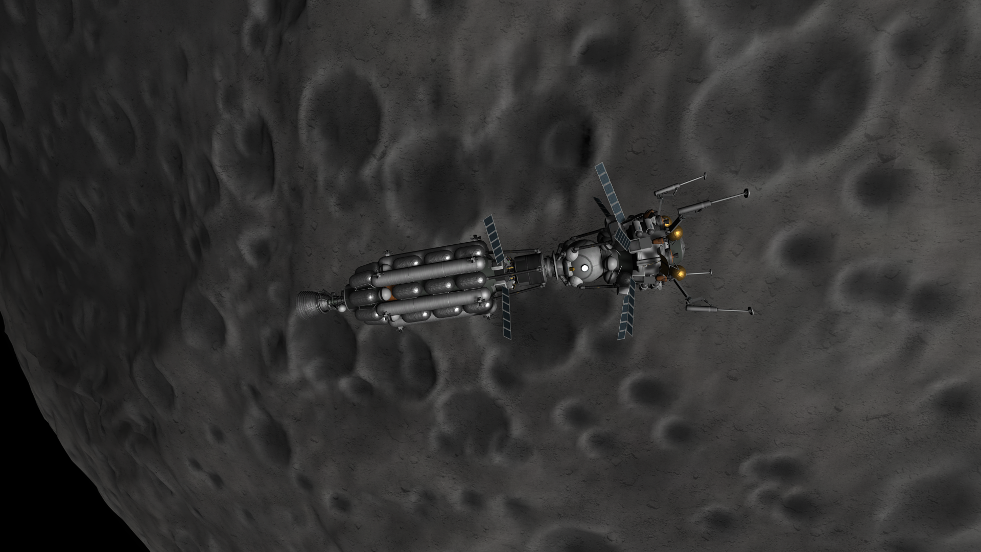 >>788246 >Ух, бля. Не спрашиваю, как ты это подымал на орбиту. Это было эпичное событие. Сам понимаешь - круглые баки для водорода пустые. А откровенно говоря, можно было сделать намного проще - поднять ядро станции а баки пристыковать потом. А вот выровнять конструкцию в редакторе это было что-то с чем-то.