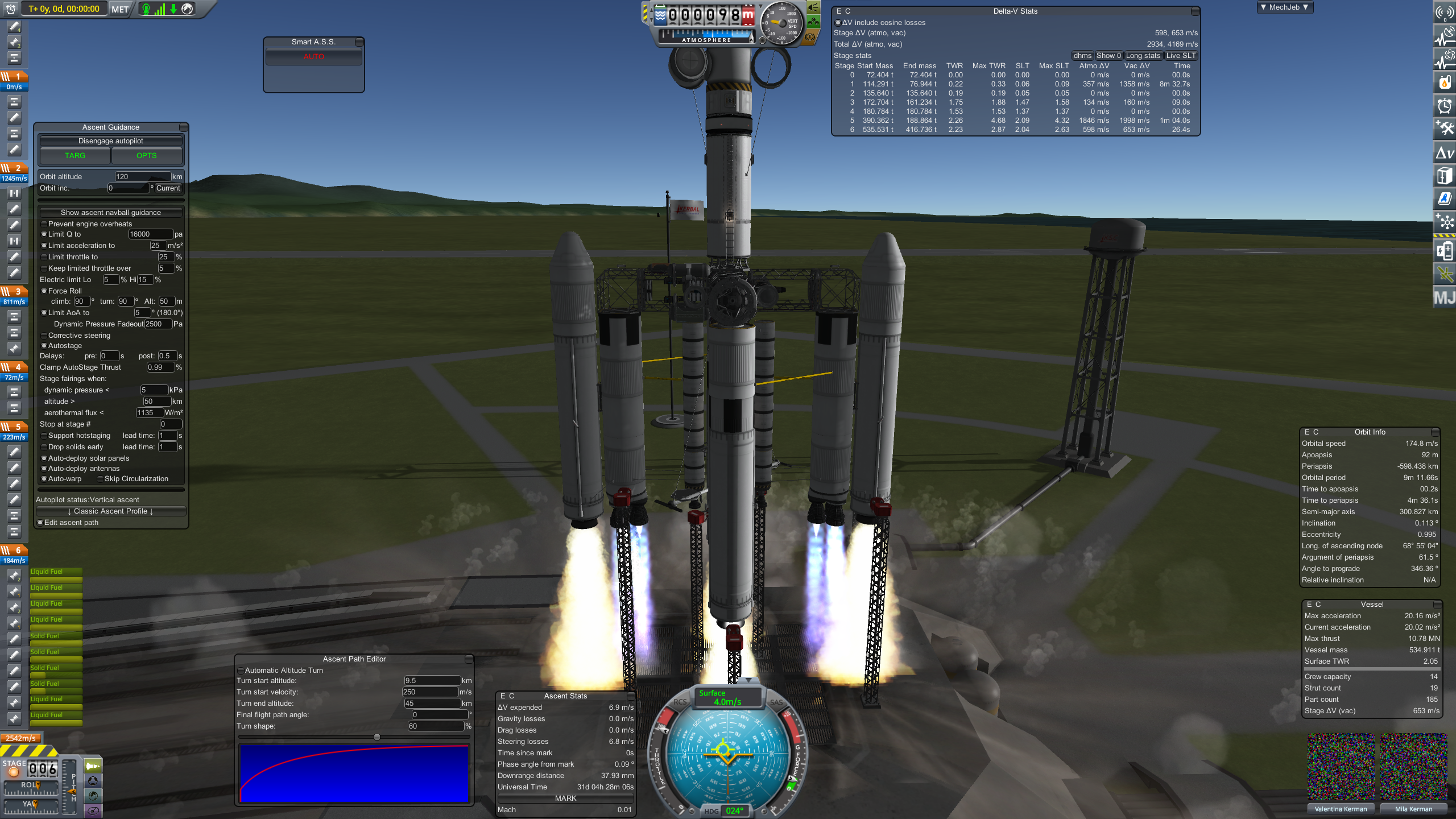 >>816744 Возможно, и даже без модов. Первая ступень газует вертикально вверх до примерно 120 км, на выходе из атмосферы отделяется вторая с огурцами в креслах и 3к дельты, и скругляет орбиту раньше, чем первая падает обратно в кисель. Дальше огурцов в станцию/орбитальное такси, первую ступень сажать туда же, откуда взлетел и заправлять с ровера-бурильщика, во второй отправляем на поверхность следующую смену персонала. Стыковать их обратно заебно, но кроме этого все просто делается.