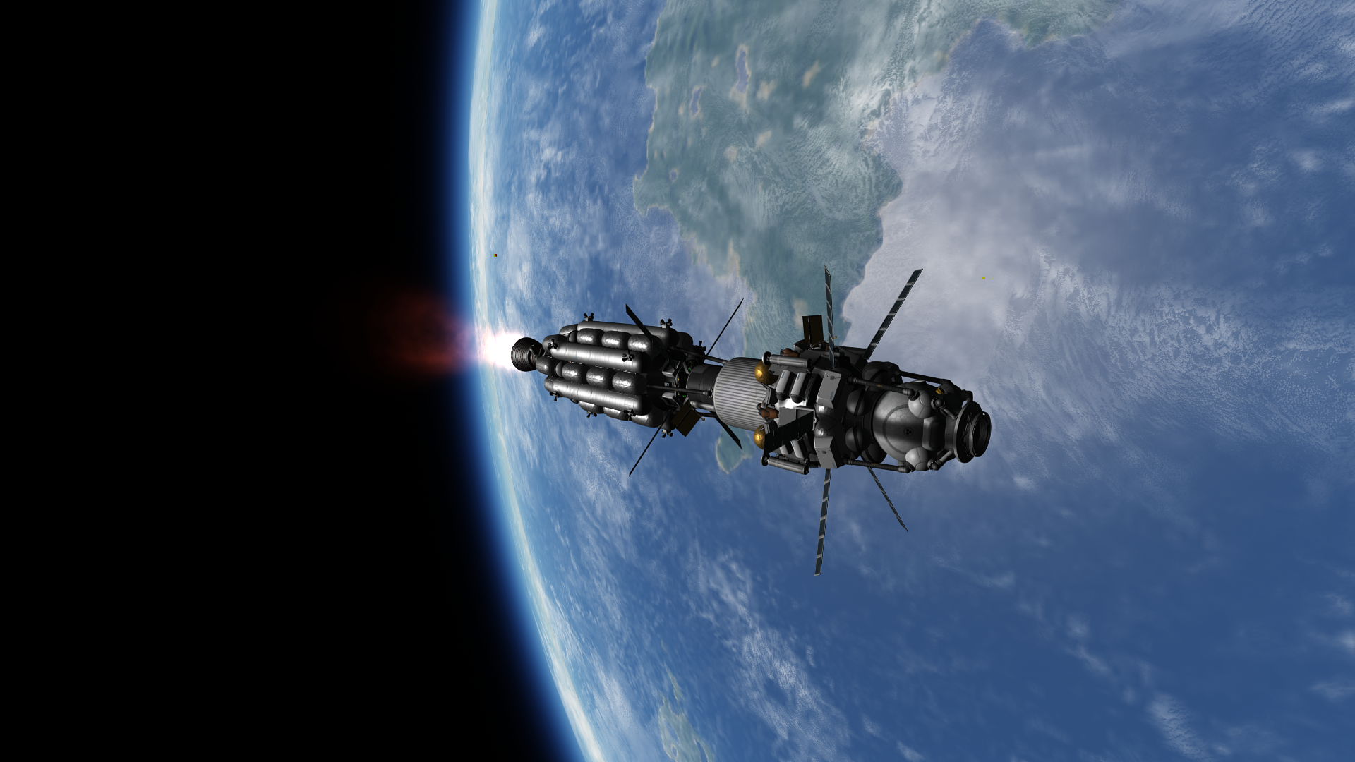 >>788331 На подлёте к Теллумо вытаскиваем огурцов из корабля для фоточек. К сожалению, перицентр полёта был на ночной стороне, так что самого красивого не засняли. Дальше уныло ждём в таймворпе возвращения домой. На подходе к родному Гейлу выкидываем остатки научно-жилого модуля и начинаем suicide burn перед входом в атмосферу. Кое-как сбрасываем скорость с 17 с лихуем до 13.7 км/с.