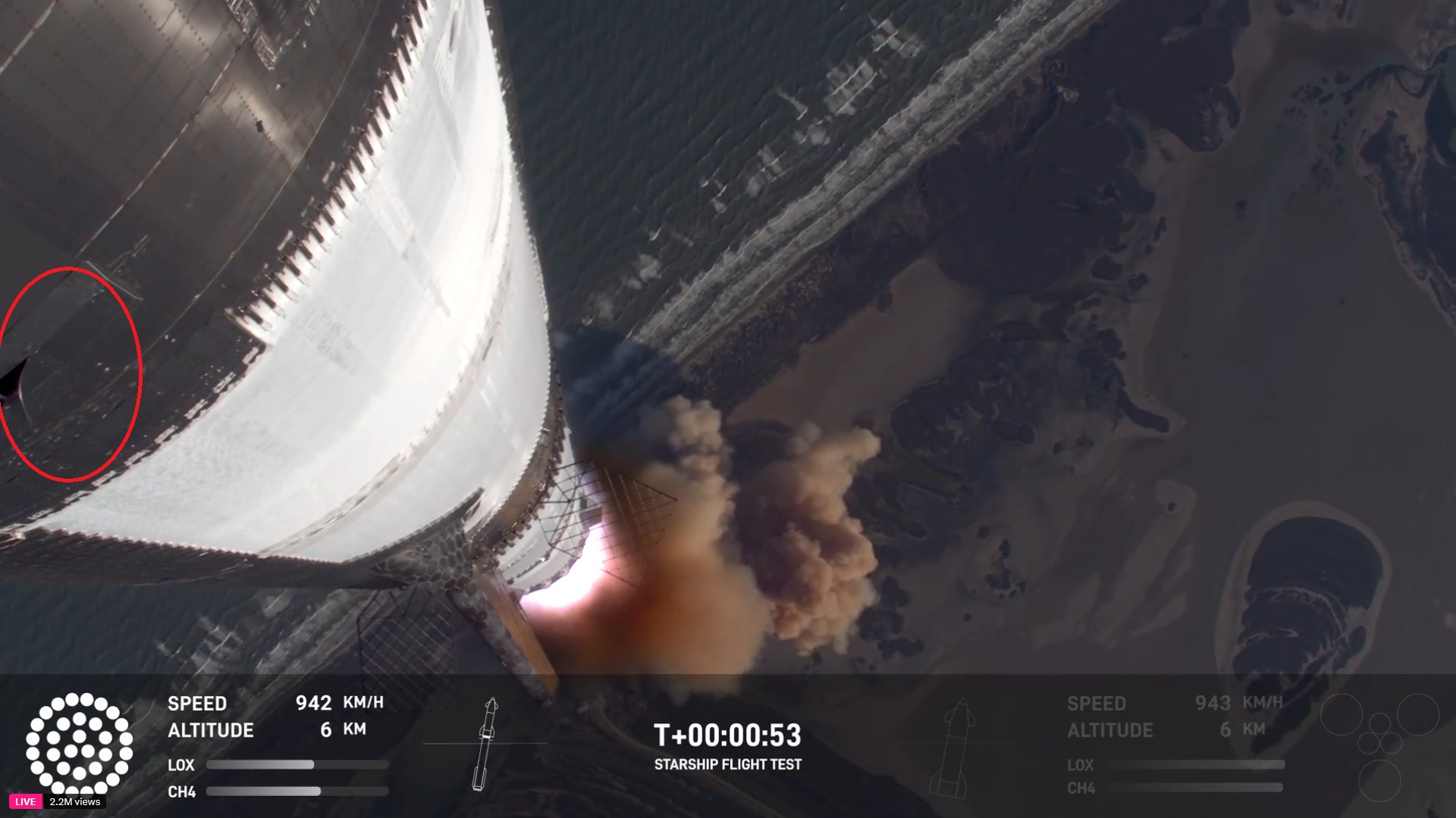 Заметил странное в запуске Starship - ракета уж больно вверх летела, поворачивать за восток начала сильно поздно, так что первая ступень почти что не летела назад и для посадки почти вертикально падала. Вторая ступень тоже разгон продолжила с сильно задранным вверх носом.