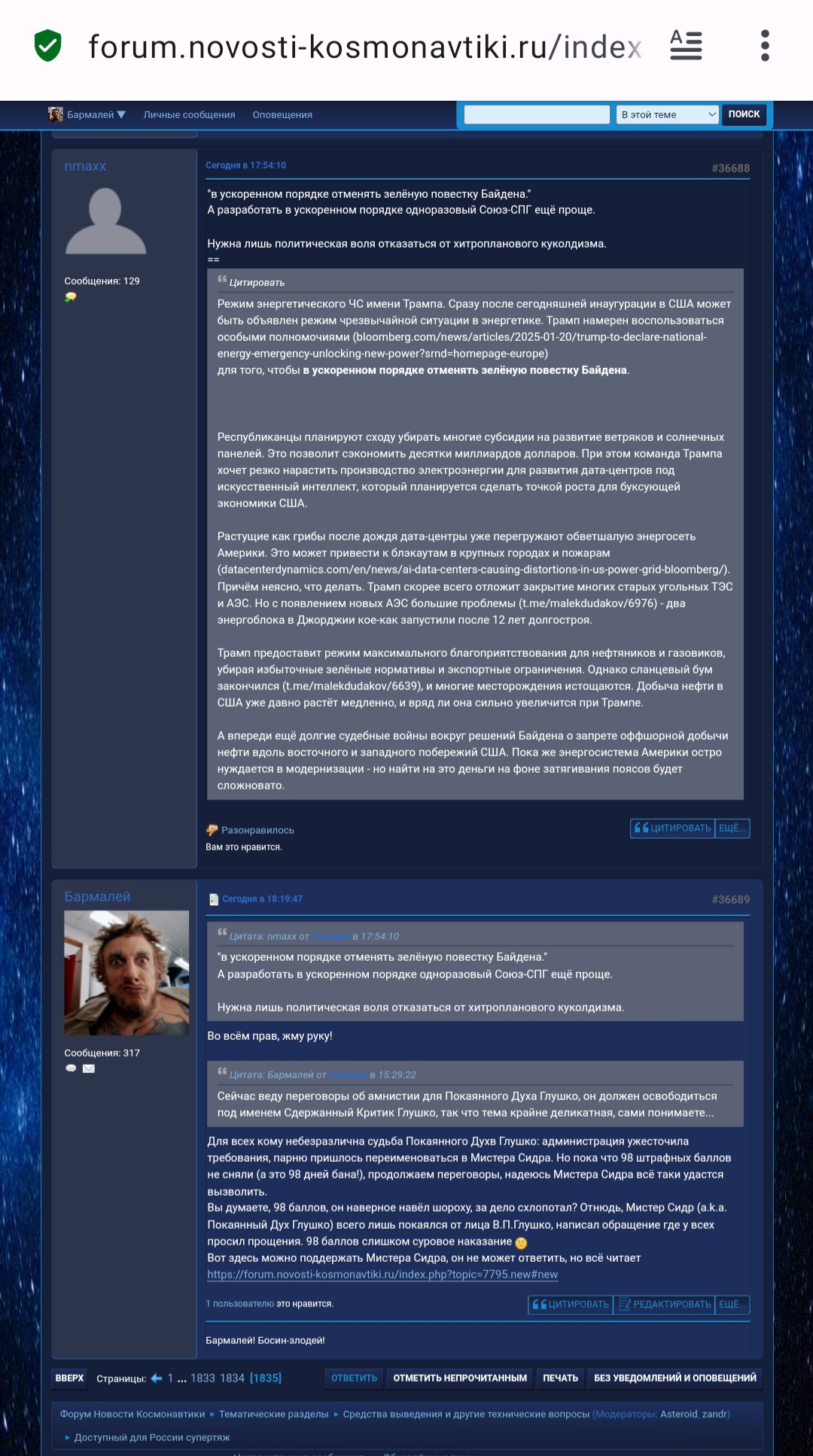 Сабреддит о SpaceX: https://www.reddit.com/r/spacex