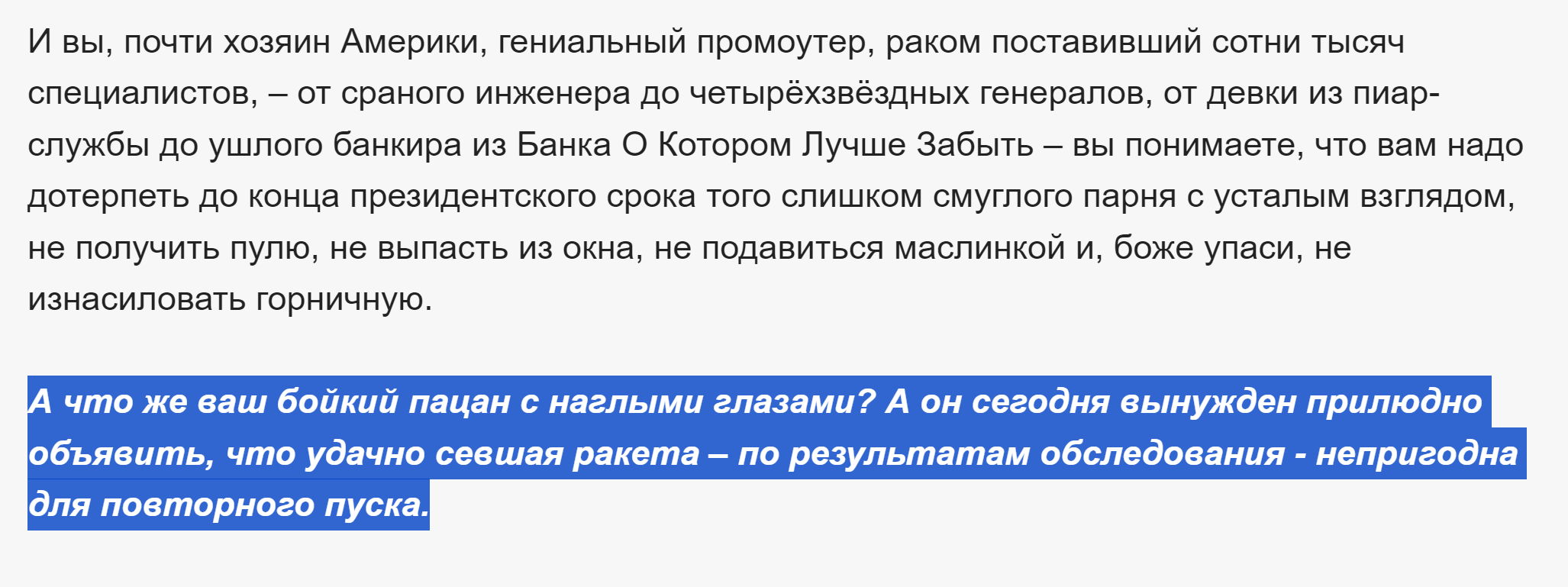 Да не ссы, либераха, тут можно говорить правду, тебя тут твои Кацы за такое не забанят