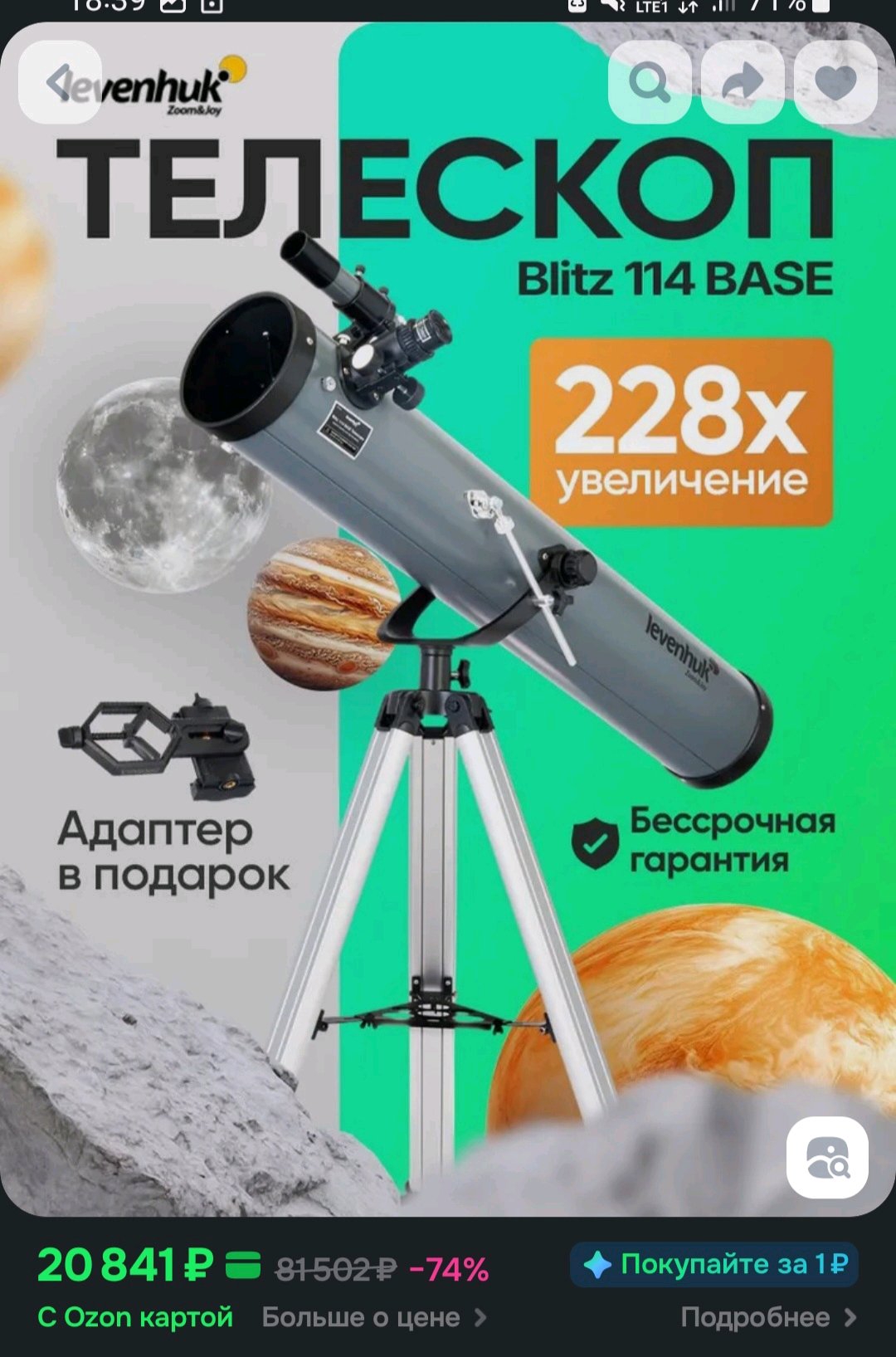 В ту же цену я бы посоветовал https://aliexpress.ru/item/1005008570361985.html И самодельную монтировку Добсона, которая конечно хрень полнейшая, но все равно лучше того что у тебя на картинке.