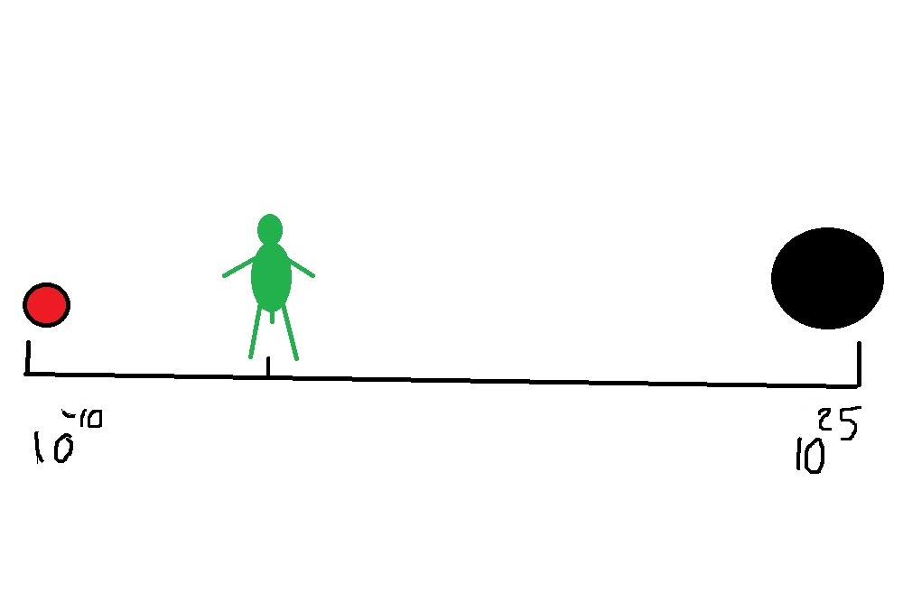 соляриса вам в хату. стало очень интересно к чему размер человека ближе, к квантовому миру или к размерам видимой вселенной. понятных картинок не нашел, считал сам. ничего в этом не понимаю. то что я нарисовал похоже на то как на самом деле? есть где-то подобная инфа?