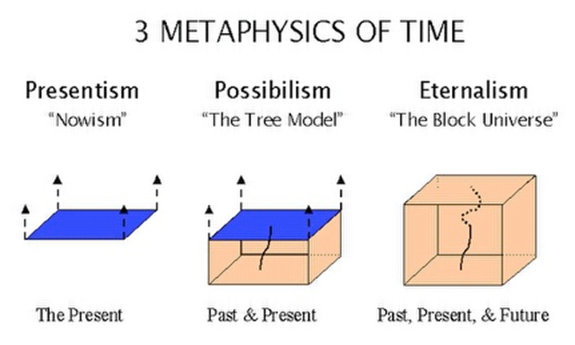 Этернализм — прошлое-настоящее-будущее объективно существуют, ощущения настоящего — иллюзия сознания. Согласуется с ОТО. Провозглашает детерминизм.