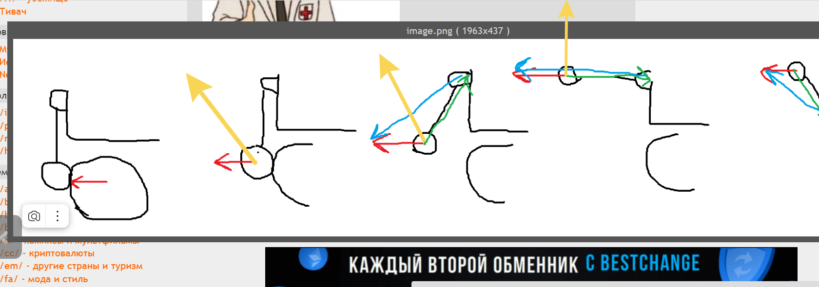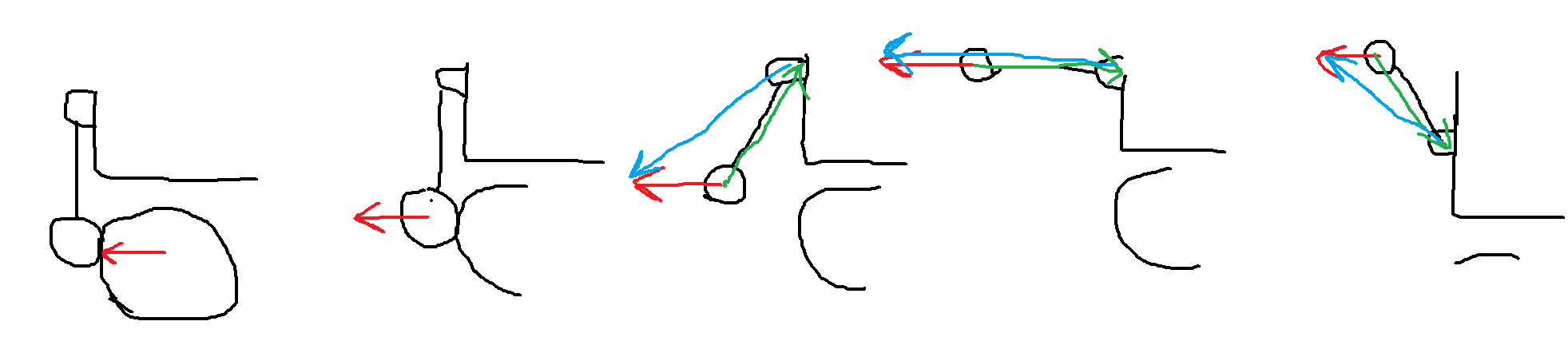 >>804104 По условиям на картинке у нас молоток имеет жёсткую привязку, а, значит, свободен двигаться только в пределах полукруга от шарнира в основании рукояти молота