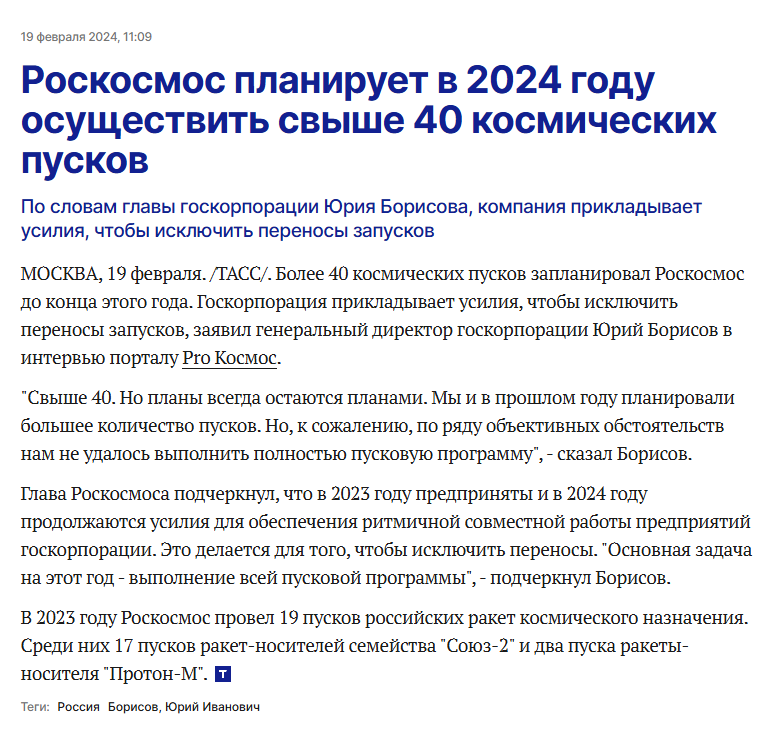 Ну Борисов блин тоже пообещал что спутники будут идти как на конвейере и будет 40 запусков в 2024 году. А получилось 17 и спутники с конвейера не сходят. Так сильно обманывать не стоило