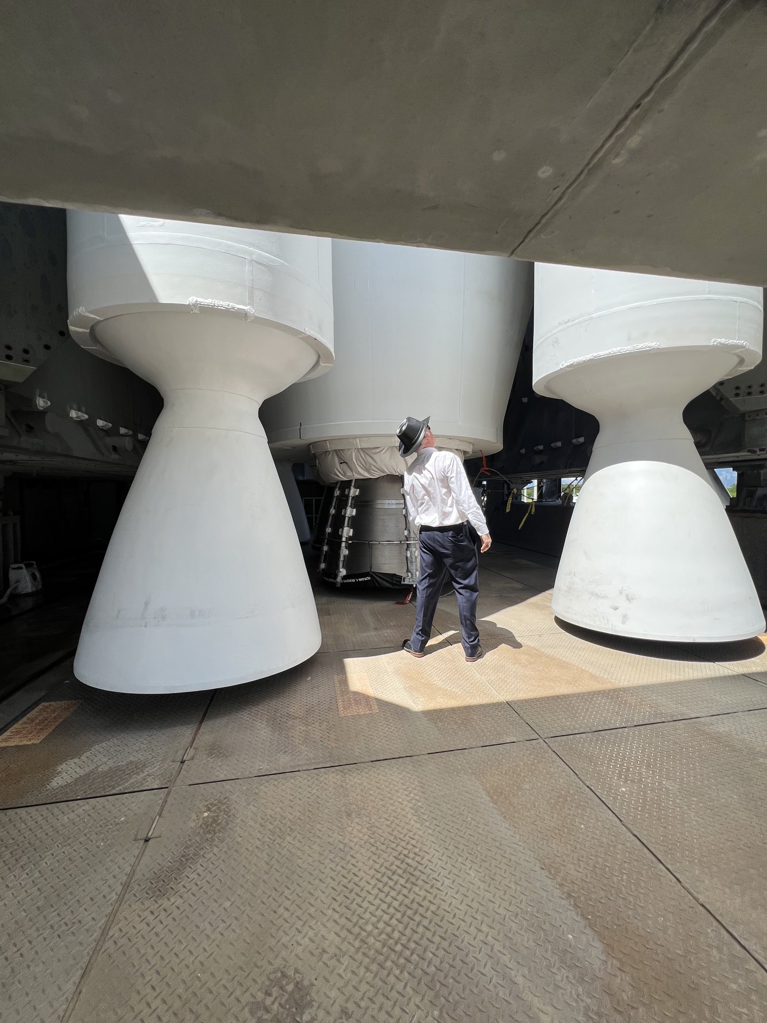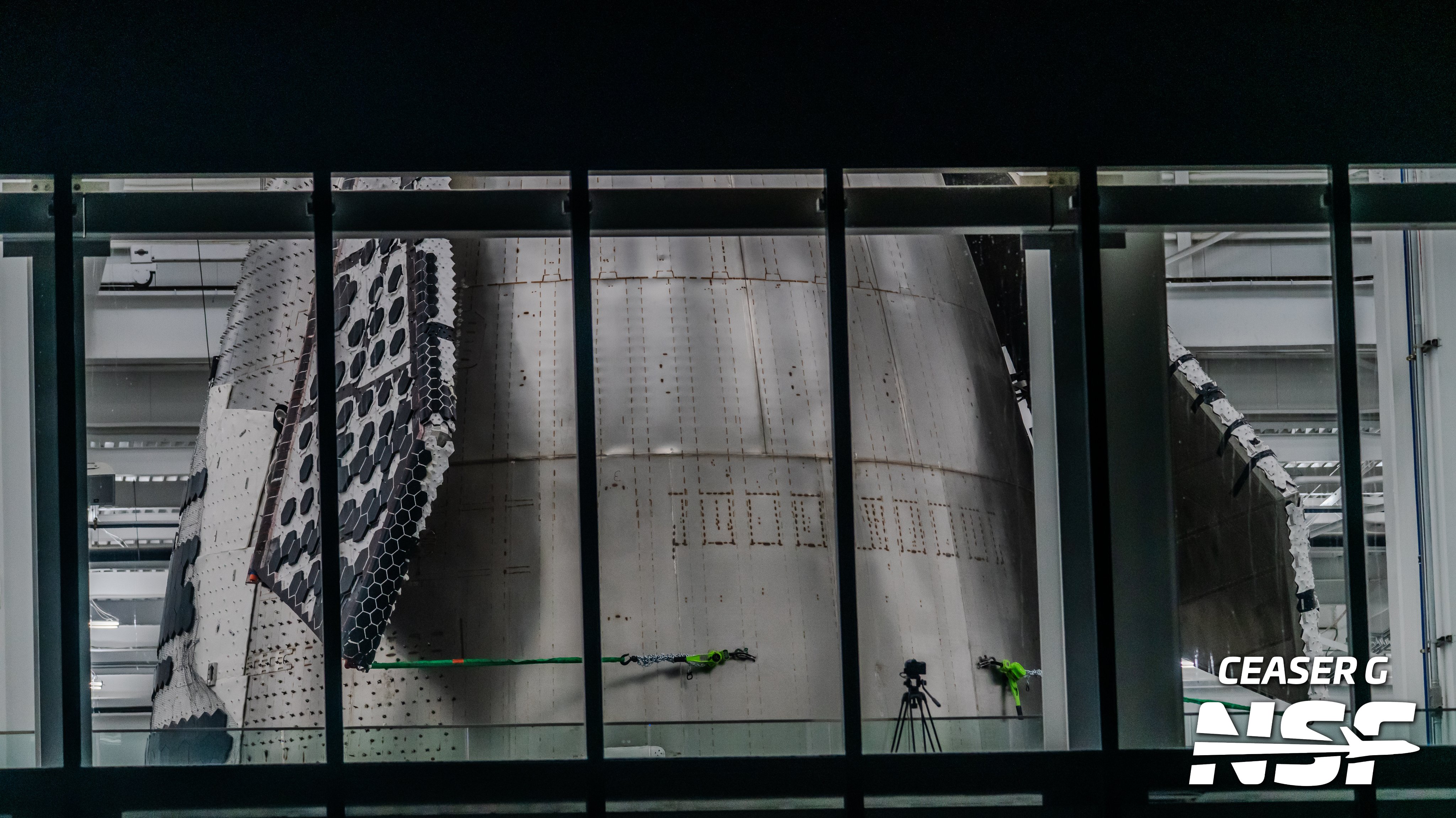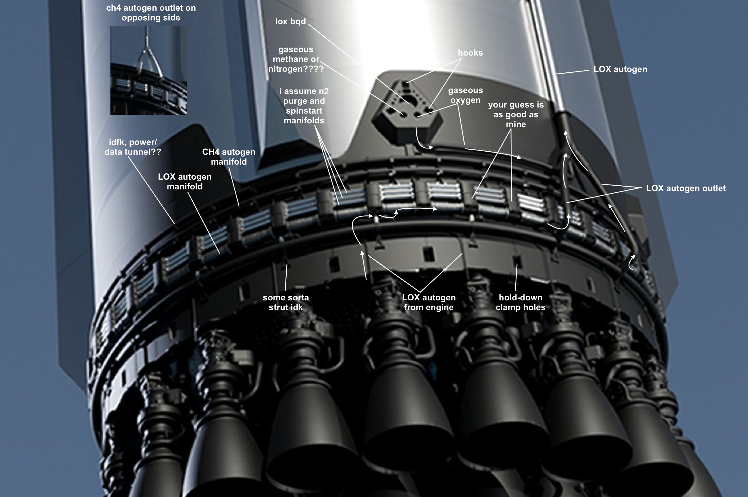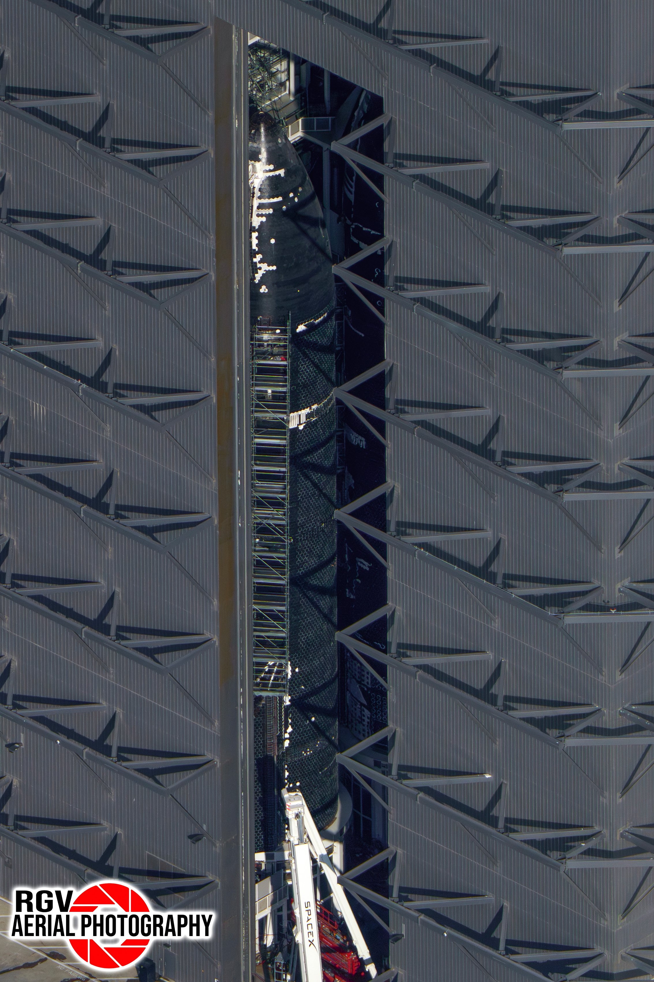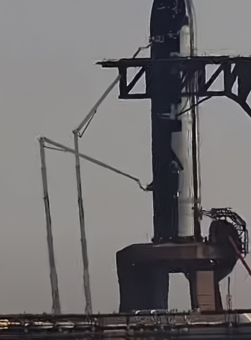 Однако из-за особенностей конструкции такой способ перевозки может быть крайне нежелательным. Горизонтальное перемещение создаёт серьёзные нагрузки и может оказаться разрушительным. Именно поэтому за последние недели на площадке заметили части конструкции, которые, вероятно, являются элементами устройства для распределения нагрузки при наклоне, позволяющего аккуратно переводить бустеры из вертикального положения в горизонтальное.