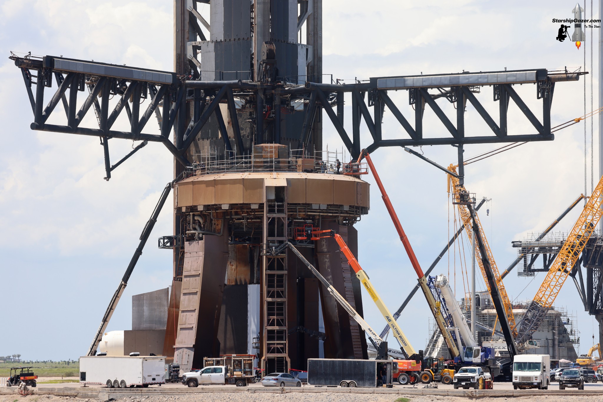 >Significant activity is underway at Starbase Launch Complex Pad 1 today, involving the clearing of the launch mount in preparation for the arrival of Super Heavy Booster 16.