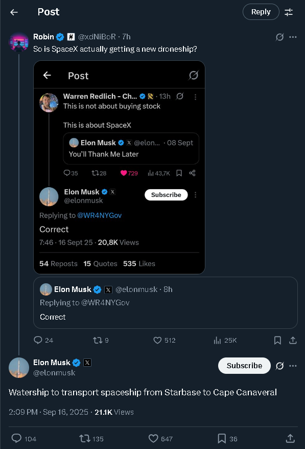 Кароч чел сенату в 17-минутном видосе говорит, что те майлстоуны, которые старшип уже проделал - это ничто по сравнению со сложностью, которая у него еще впереди. То же самое по сути, что и я говорил после 10 теста, когда говорил, что не вижу причин вротмненогу менять свое пророчество.