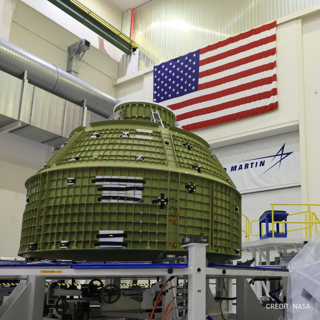 Корпус высокого давления «Орион» для аппарата «Артемида-5» — основная конструкция, в которой поддерживается сжатая атмосфера, необходимая астронавтам для жизни во время миссии на Луну и обратно — недавно был отправлен в NASAKennedy