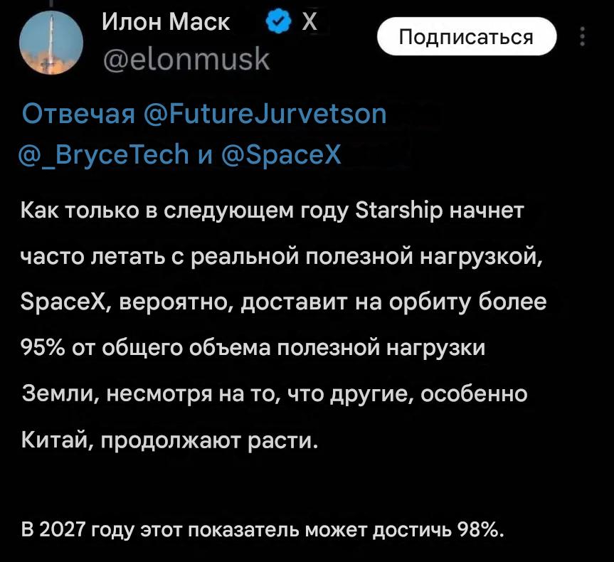 Когда же уже Старшипы выстрелят? Я сука наверно лет 5 уже жду этого переломного момента - перехода к частым полетам. Куча стартов во Флориде, два завода, два Гигабея - это же заявка на 50, на 100 полетов в год как минимум. Неужели обосрутся?