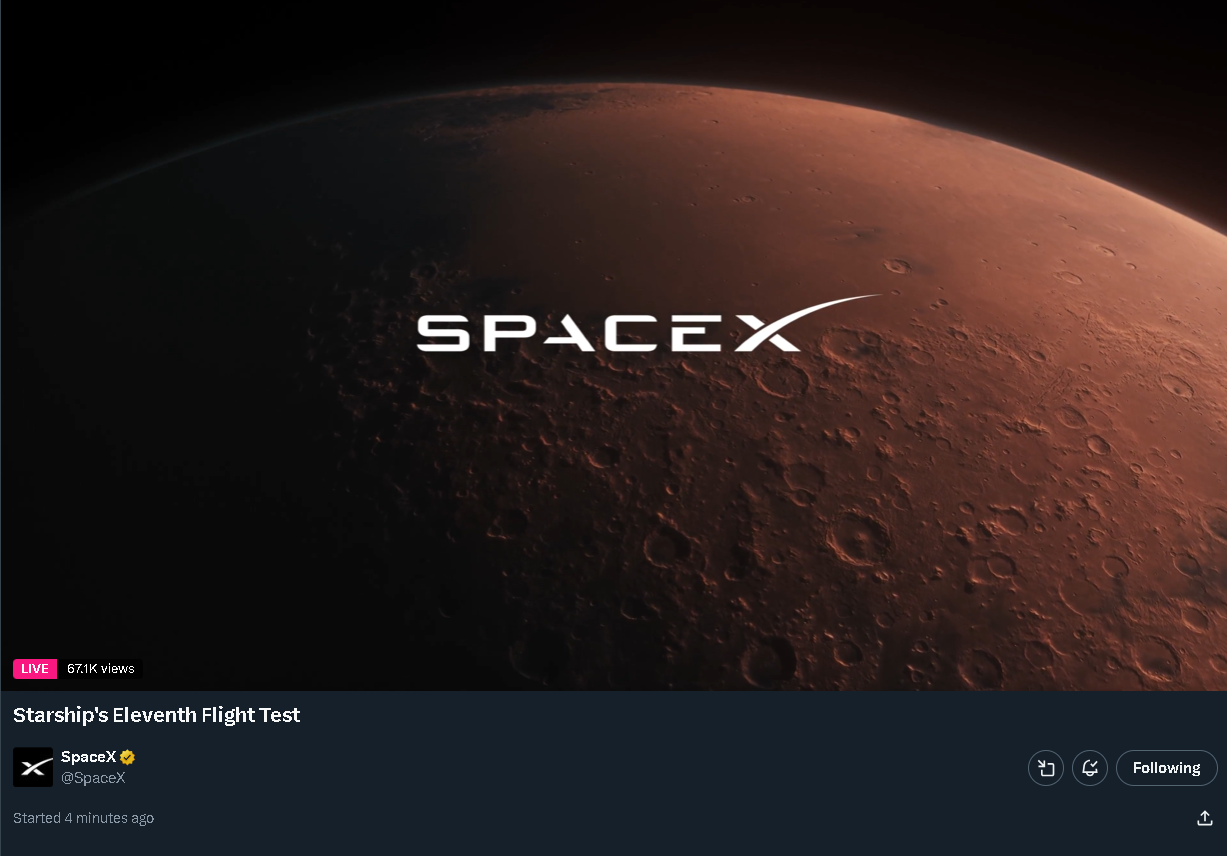 >Today we celebrated the Flight 5 first ever Super Heavy booster catch anniversary - with a successful Flight 11 flight test with a re-flown Super Heavy booster!! 🙌🏽 Congrats to the whole SpaceX team on the incredible and fast paced progress over the course of a single year! Deploying Starlink simulators, relighting Raptor engines in space, ship splashdowns and more! Heres a Flight 5 memory to commemorate lol @kate_tice @danhuot