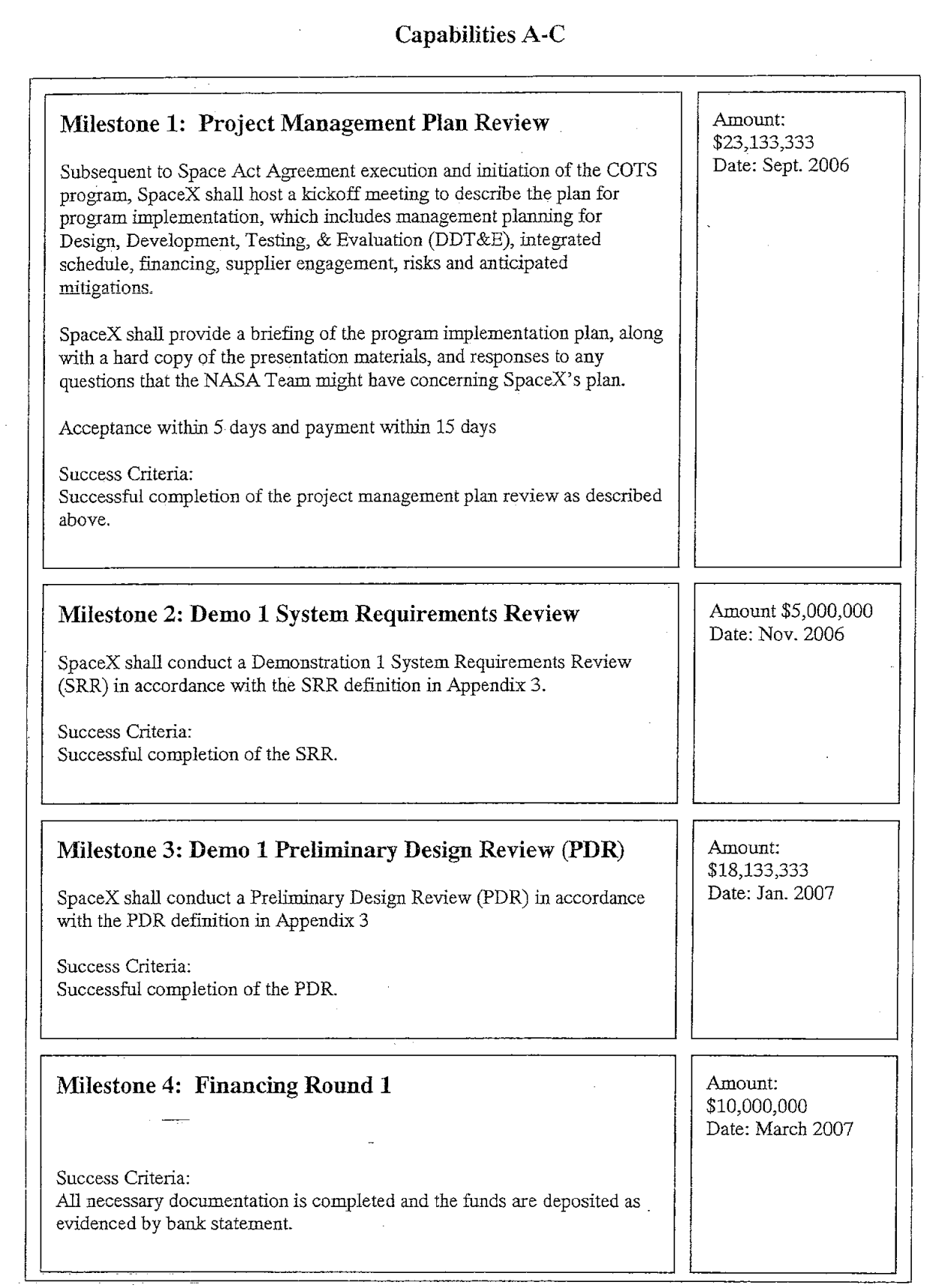 После успешного 4-го запуск, доказав работоспособность ракеты, SpaceX получили новый контракт, но, опять же, не в качестве единовременной выплаты, а с этапами.