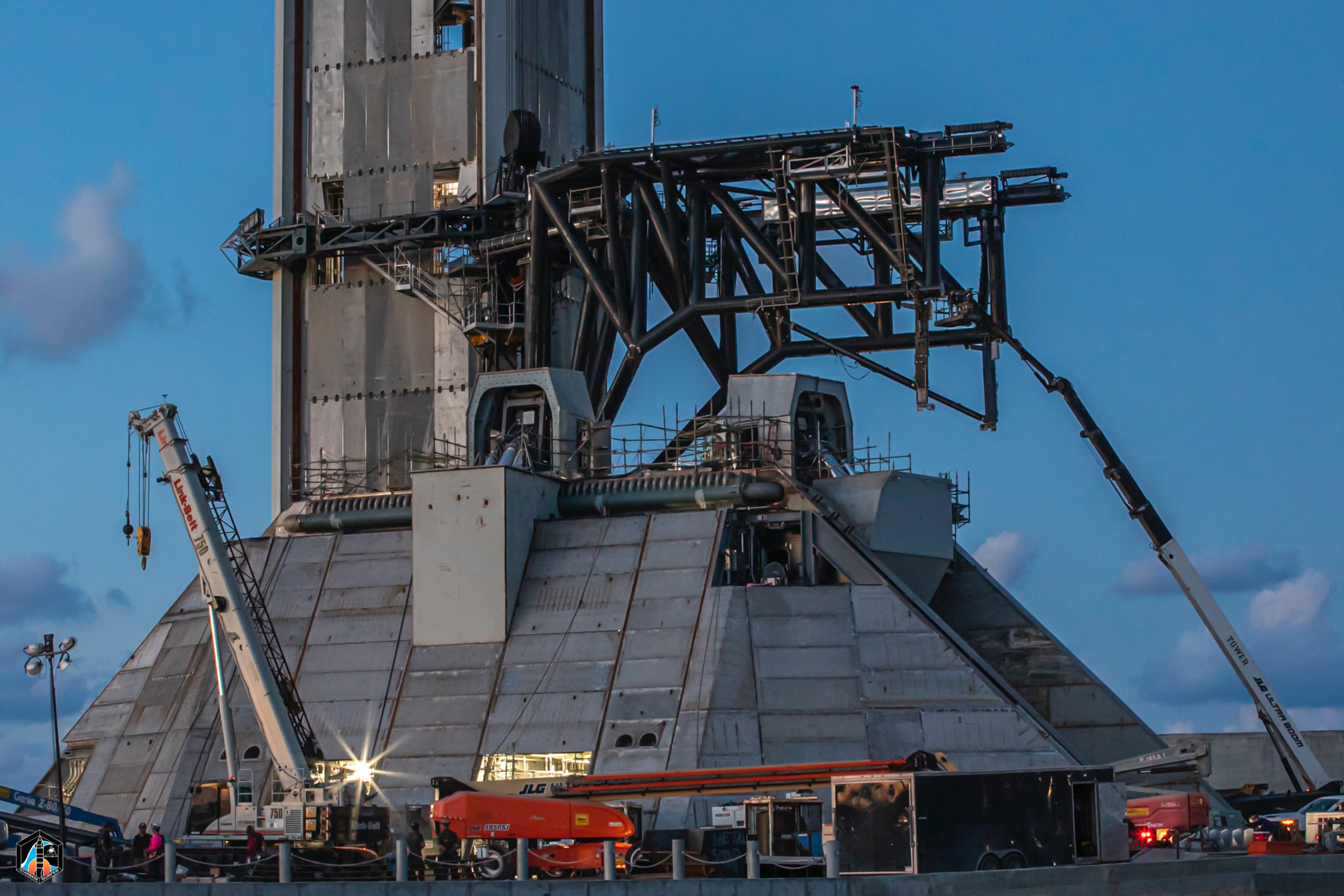 Я подумал, что вам это понравится. Тестирование поворотного кронштейна Launch Head на новой второй мобильной стартовой платформе Vulcan. Четыре таких кронштейна поддерживают ракету на стартовой площадке и удерживают ее во время запуска. А затем уходят с дороги...