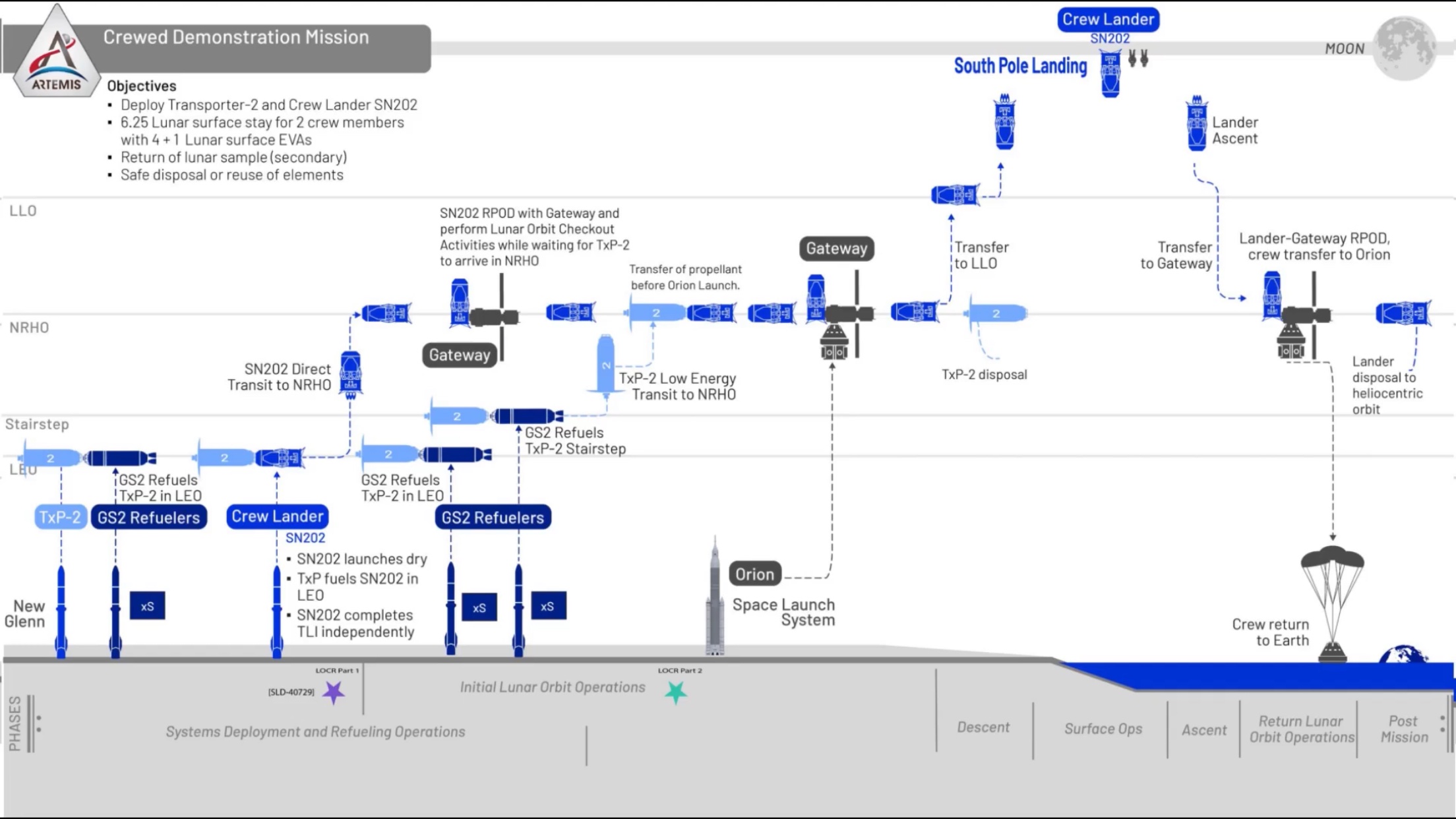 Пикрел - свежая схема от НАСА схемы полета чоловiков на Луну с использованием лэндера Blue Moon. В вики еще старая, туда не смотрите.