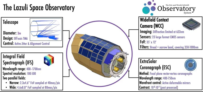 Проект стал частью новой инициативы - Eric and Wendy Schmidt Observatory System, объединяющей сразу четыре обсерватории, включая одну космическую и три наземные. Центральным элементом программы станет телескоп Lazuli с главным зеркалом диаметром 3,1 м, что больше, чем у Hubble и телескопа Nancy Grace Roman (2,4 метра). Ранее проект предусматривал создание в космосе телескопа с зеркалом диаметром 6,5 м. В 2024 году он был пересмотрен в пользу зеркала меньшего диаметра.
