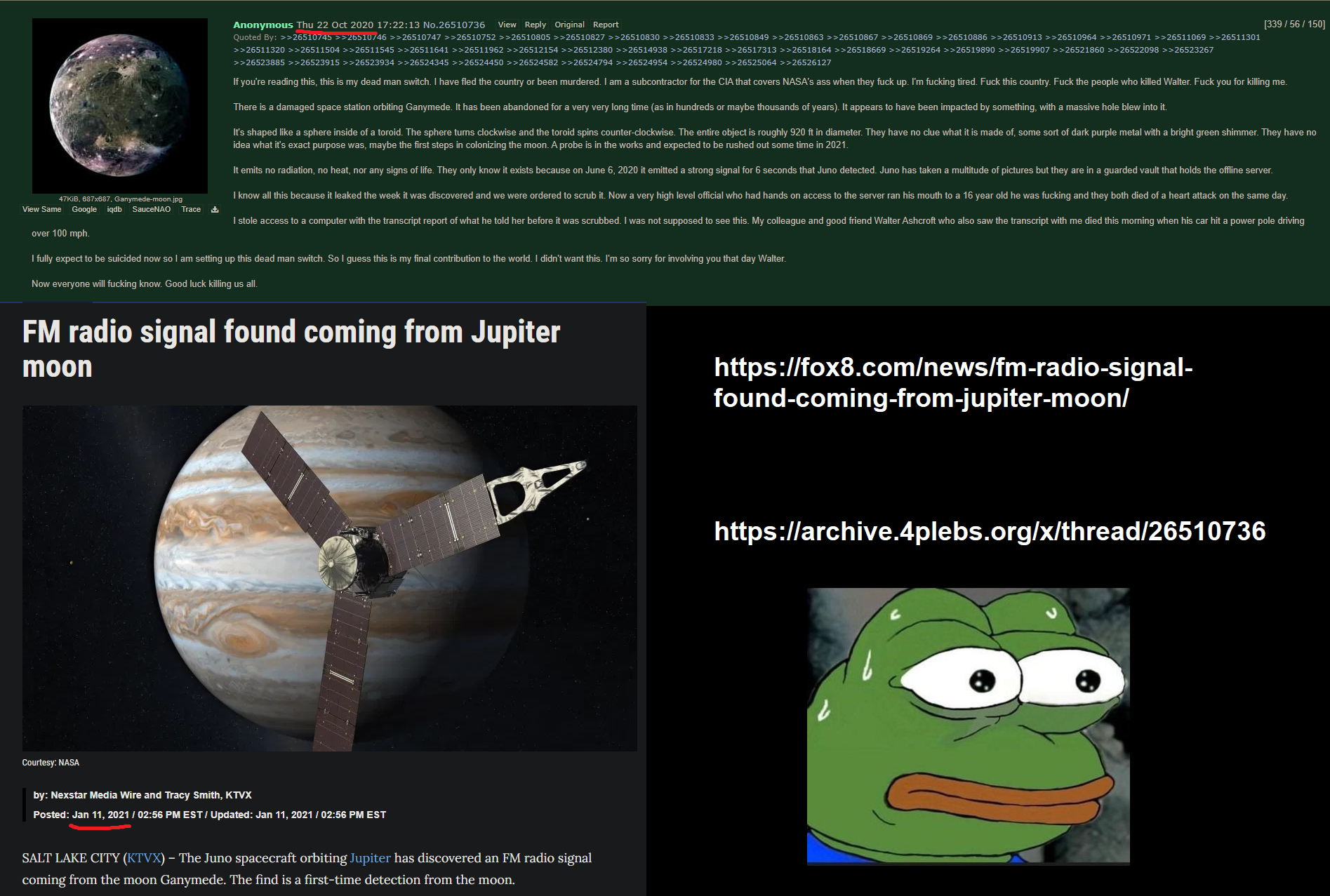 >>828996 >Во-первых, у данного объекта очень низкая скорость. Ну да, технологические объекты же не могут менять скорость, очень "весомый" аргумент. >Во-вторых - считается что комете 3I/ATLAS более семи миллиардов лет Кем считается? Теми (((учёными))), которые даже толком ни одного нормального снимка не предоставили, а вместо этого постят фоточки фонарей в тумане. Верим конечно, как не поверить. >А из всего этого вытекает, что Кометошизики или очень тупые или остальных считают такими. Нормальному здравомыслящему человеку совершенно ясно, что Атлас никак не может являться кометой. >Читать дальше: Спасибо, не нужно.
