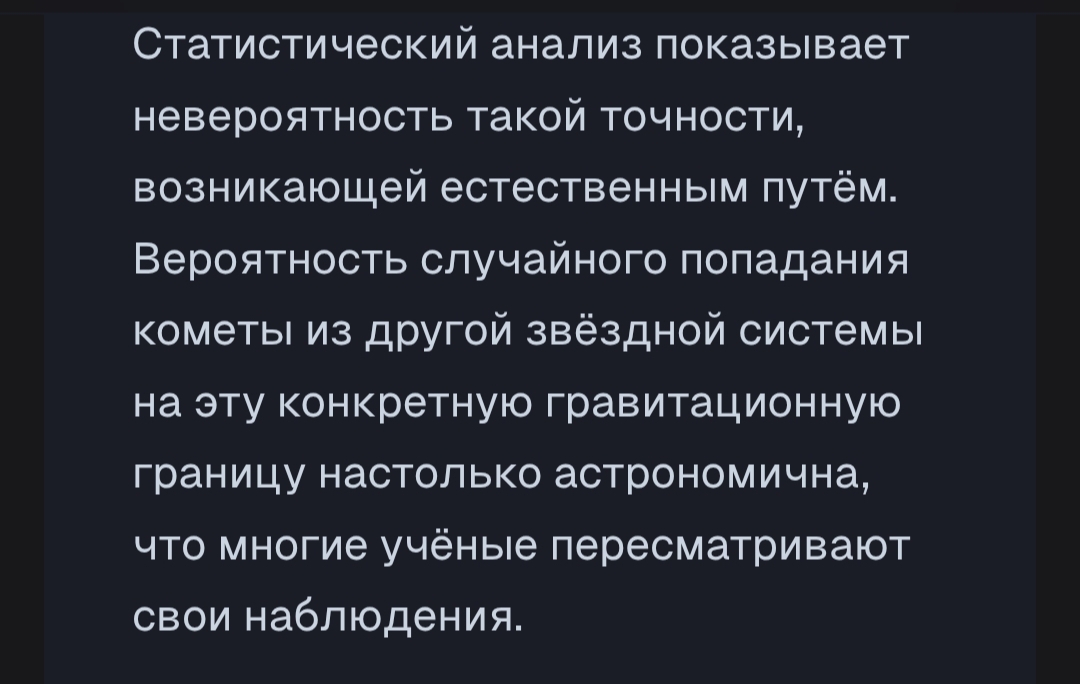 Куча народу обсуждает тему 3I/ATLAS как корабля пришельцев. Указывают на аномалии в поведении сей кометы. А как насчет того чтобы рассмотреть причины "от противного", причины почему 3I/ATLAS НЕ может быть инопланетным звездолетом?