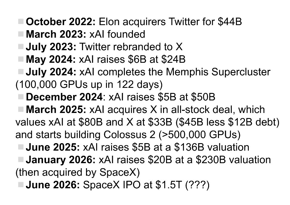 «SpaceX приобрела xAI, чтобы создать самый амбициозный, вертикально интегрированный инновационный центр на Земле (и за ее пределами), включающий искусственный интеллект, ракеты, космический интернет, прямую связь с мобильными устройствами и ведущую в мире платформу для обмена информацией в режиме реального времени и обеспечения свободы слова», — заявила компания. «Это знаменует собой не просто следующую главу, а следующую книгу в миссии SpaceX и xAI: масштабирование для создания разумного солнца, чтобы понять Вселенную и распространить свет сознания до звезд!»