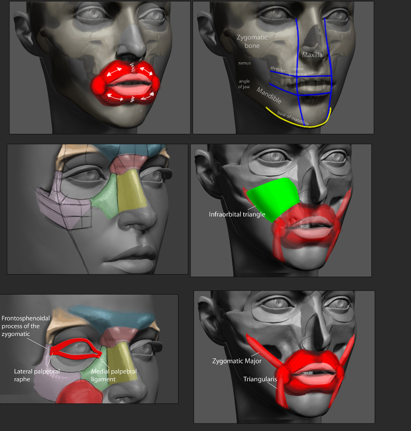 >>289447 > вбросив первое попавшееся в гугле анатомическое пособи Ни, эт с моего основного рефборда, он, в основном, по головам, но есть и остальное. >зачитав какую-то хуй пойми кем выведенную математику Может, художниками и скульпторами еще с бородатых времен средневековья? Алсо, ты можешь сфоткать свое лицо, только с углом не проебись, замерять его линеечкой и охуеть с того, что большая часть пропорций лица совпадут с общепринятыми, если ты не мутант с какими-то отклонениями, конечно. Ну, и кроме того, > рядового обывателя, а не звёзд рекламы косметики, А персонажники делают рядового обывателя, или таки звезд реклам косметики? Когда какая-то из студий вываливает поделие, где персы - ближе к рядовым обываетлям, тут же случаются срачи на тему "а какова хуя" и "опять прогнулись под сжв". покормил >>289446 не за что, я б тебе еще посоветовал две вещи - найти одну обрубовку, сфотканную с нескольких ракурсов, и по ней сделать несколько моделей, чтоб задрочить основные плоскости головы. И второе - сверяться с собственной головой. Прощупывать кости, выпуклости/впуклости и проч. А если сможешь добыть голову в гибсе - то это вообще пиздец шик. Фотки фотками, но мы делаем не 2д изображения, различия есть у меня жена - художник, и то, что в 2д применимо и котируется, в 3д может тебя подставить, например Все это пишу по своему опыту