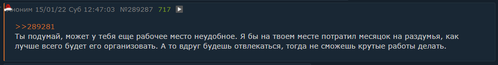 >>289281 Ты подумай, может у тебя еще рабочее место неудобное. Я бы на твоем месте потратил месяцок на раздумья, как лучше всего будет его организовать. А то вдруг будешь отвлекаться, тогда не сможешь крутые работы делать.