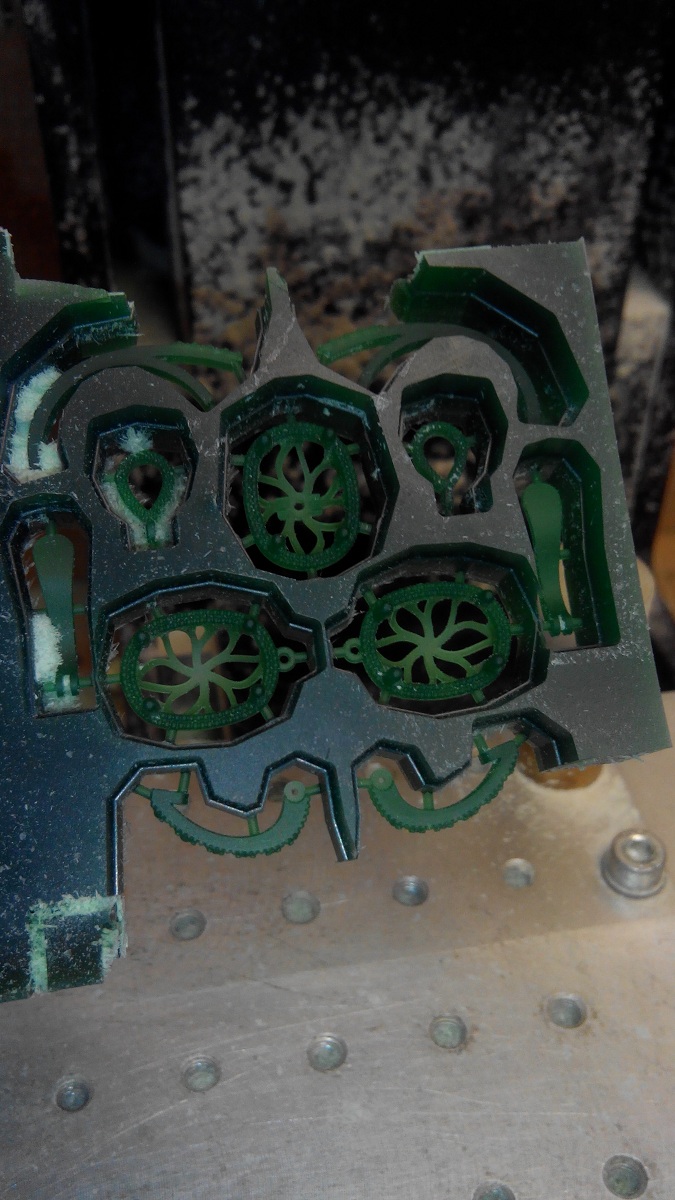 Круглая хуета - обработка внутри, а потом резка на поворотке, благо станок позволяет поворачиваеть шпиндель. Часа полтора еще.