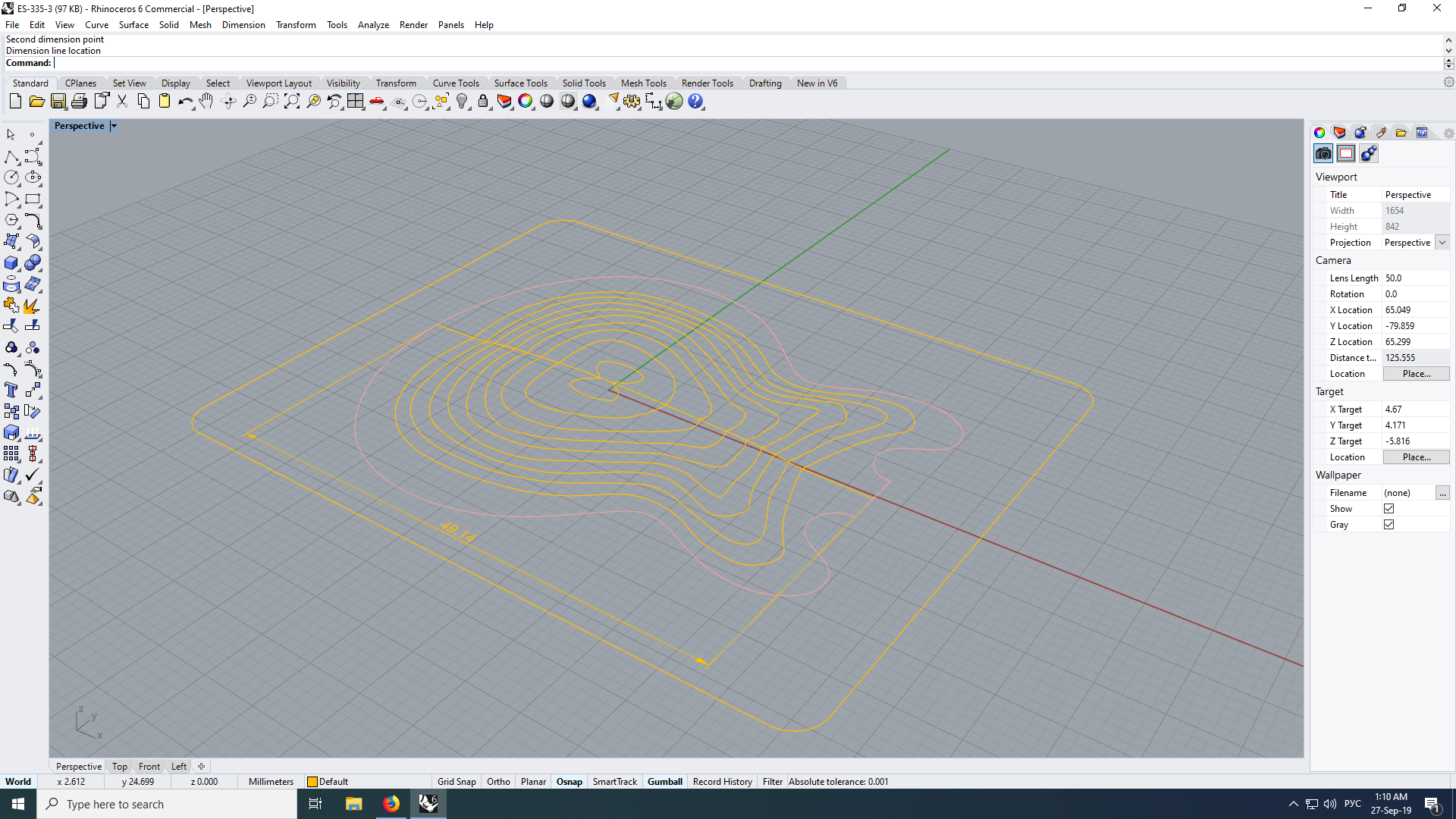 Я уже понял, что есть т.н. RhinoCam - плагин для эмуляции процесса фрезерования и подготовки программ для станка. Но проблема в том, что я элементарную вещь понять не могу: какого, блеать, размера, моя модель? Импортировал изначально чертеж в натуральную величину (а на деле - фиг его знает), в файле стоят единицы измерения - миллиметры (File>Document Properties>Units>Model Units). Поставил линейку (Dimention>Linear Dimension). См. скрин. Какого размера линия в реальных размерах? 49.14 миллиметров?! Меньше 5 см? Как точно масштабировать все эти кривые так, чтобы расстояние между двумя этими точками стало 463.55 (18 14"), как на чертеже? Ребят, выручайте!.. С меня бочки нефти.