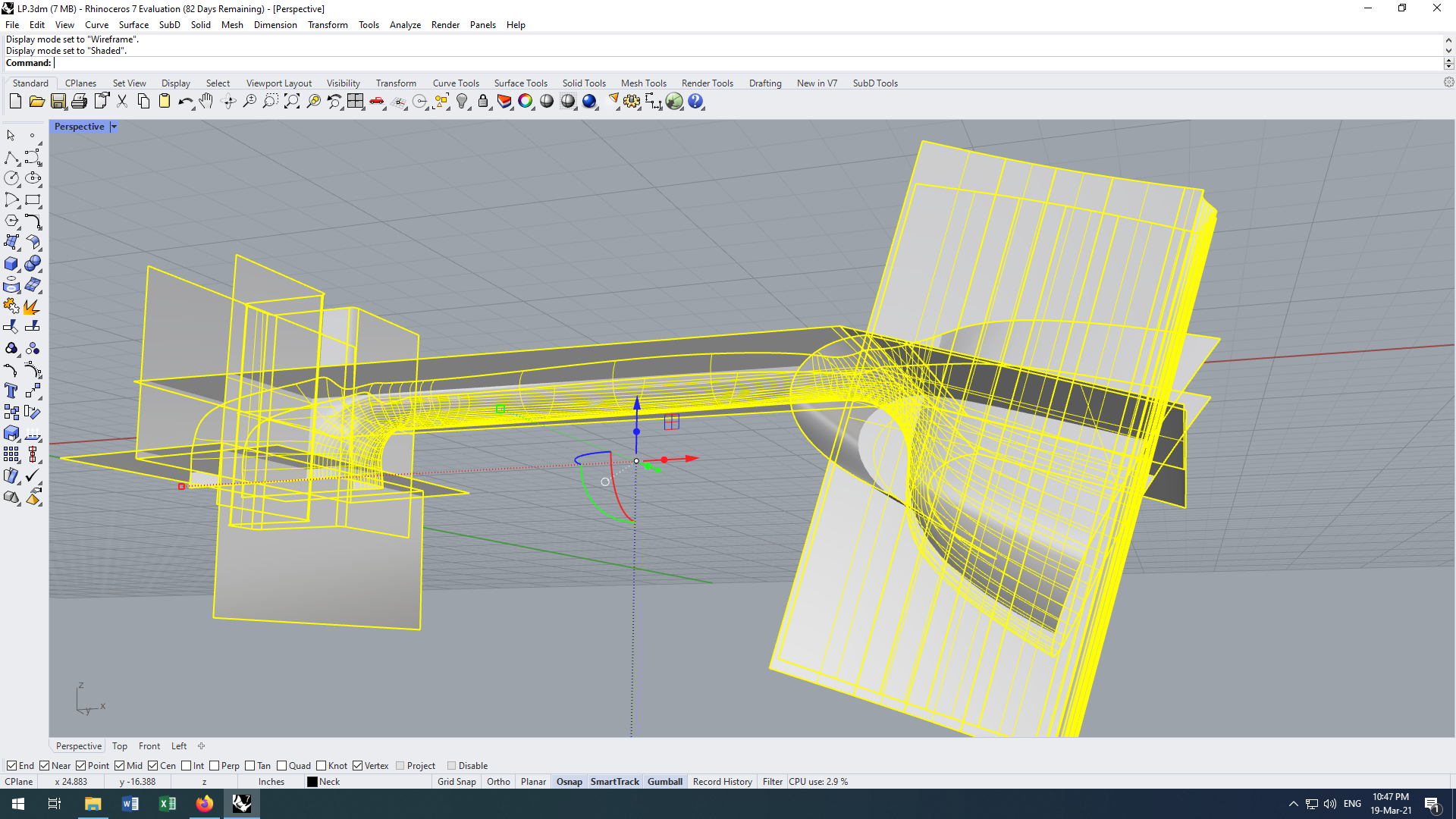 Анон, выручай! Протрахался с грифом некоторое время и понял, что "я ничего не знаю" (на скрине он, голова ещё не в зачаточном состоянии): заставить работать "surface from network of curves" мне удалось только на шейке (палка), а в месте перехода в пятку грифа намечается пиздец. С головой - аналогично. В туториалах по Рино подсмотрел инструмент "Surface from 3-4 curves": люди сплитят сопрягающиеся кривые друг о друга и малыми лоскутами набирают сложные поверхности. Насколько такой способ жизнеспособный и не зашкварный верный? Ведь эти поверхности никак не "сшиты"?