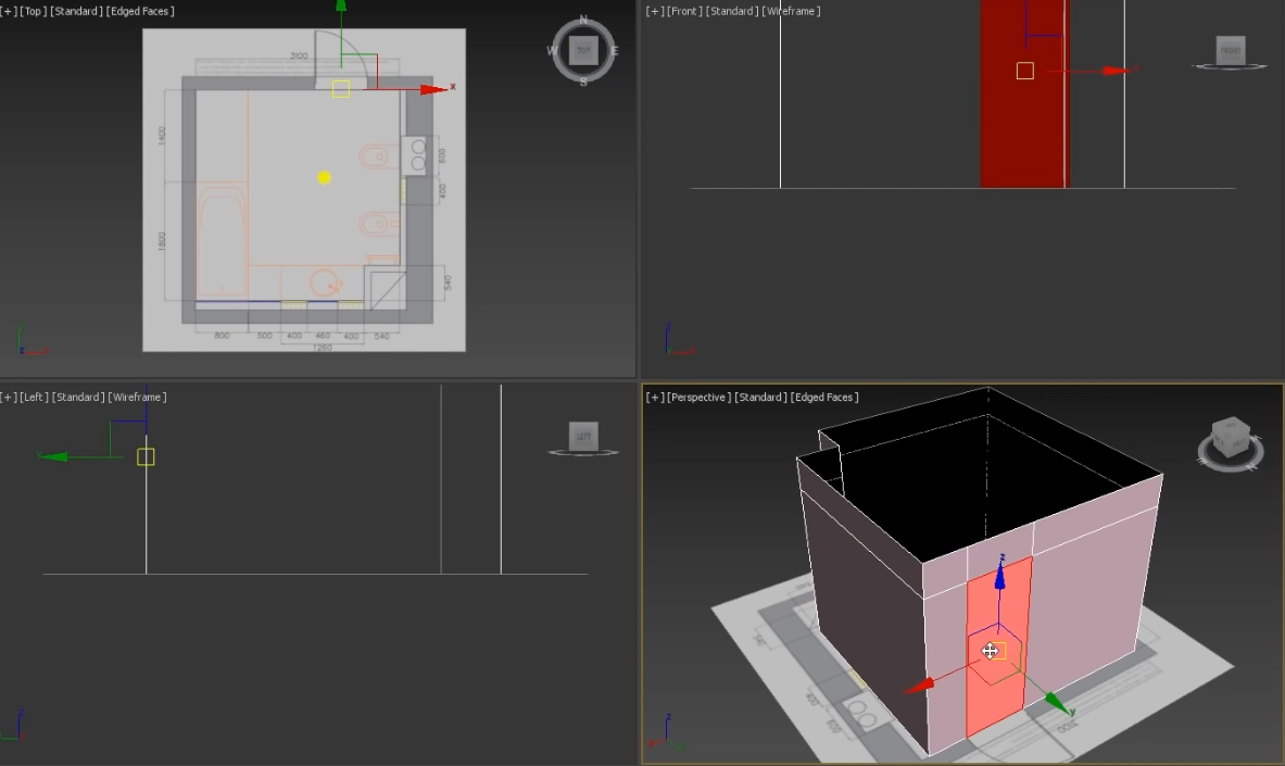 Как лучше обводить интерьер по чертежу: 1) как делает Дмитрий Эпов - через сплайн по стенам + несколько экструзий полигона + shell и потом он просто удаляет полигоны там, где окна-двери пример https://www.youtube.com/watch?v=EFHrKYzJNRU&t=2413s 2) Либо как делает большинство - через сплайн по стенам, экструзию, shell и тупо вырезая квадратики булеаном