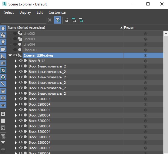 Если удалить родительский объект (Схема_220v.dwg), то удаляется только он, а все дочерние автокадовские слои остаются.Если попытаться удалить дочерние ноды - ни при нажатии на Delete через ПКМ, ни при нажатии на Del, ничего со ними не происходит.