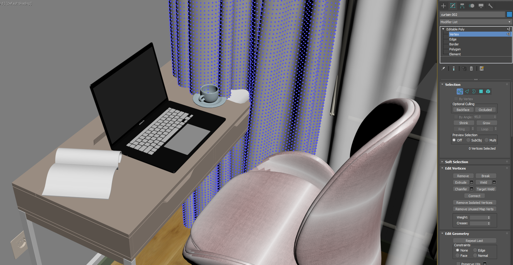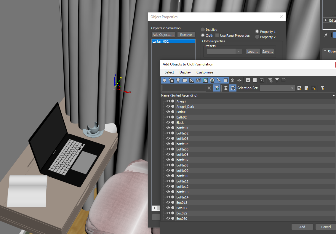 Аноны, подскажите плз, как проще всего "заправить" штору за стол? Мои скиллы в максе ограничиваются "замержить модельки и расставить их по сцене", чем собсно я и занимаюсь сейчас :<
