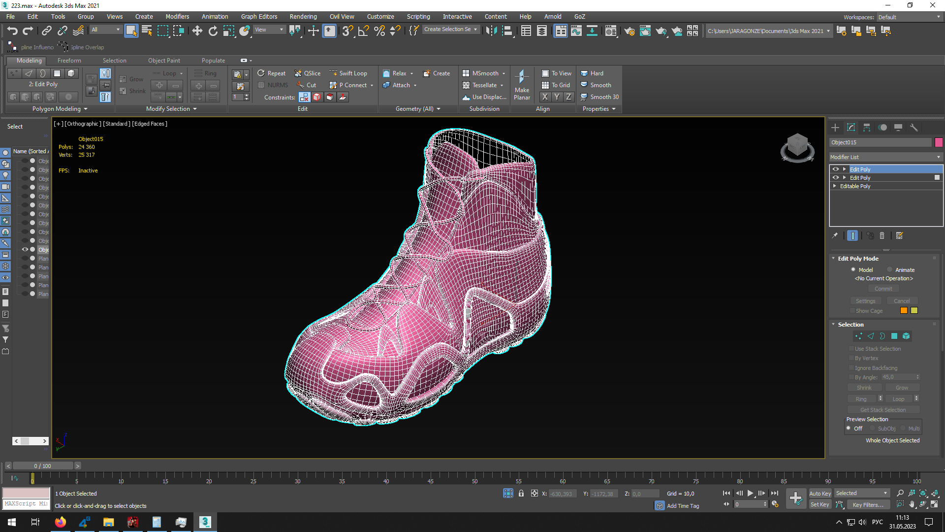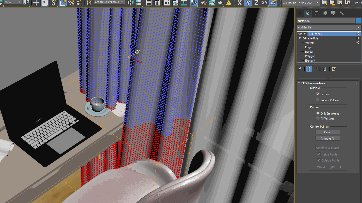>>284578 Выделил вертексы, которые хочу заправить за стол, накинул ффд 3х3 Пытаюсь двигать, но двигается весь объект целиком Видимо, нужно было сделать что-то еще